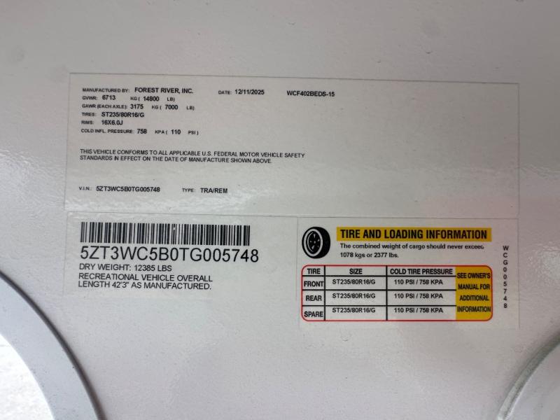 New 2026 Forest River RV Wildcat 402BEDS Fifth Wheel