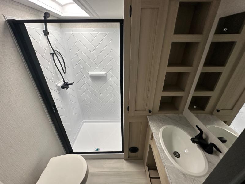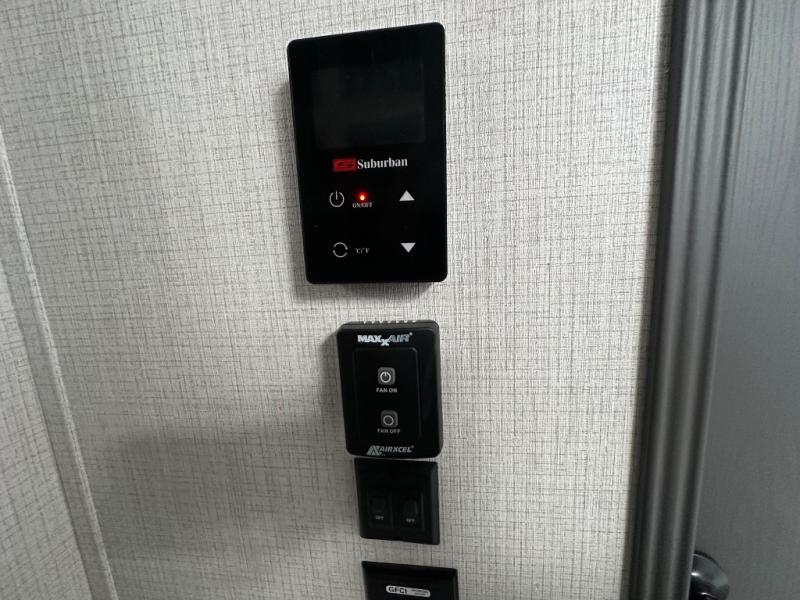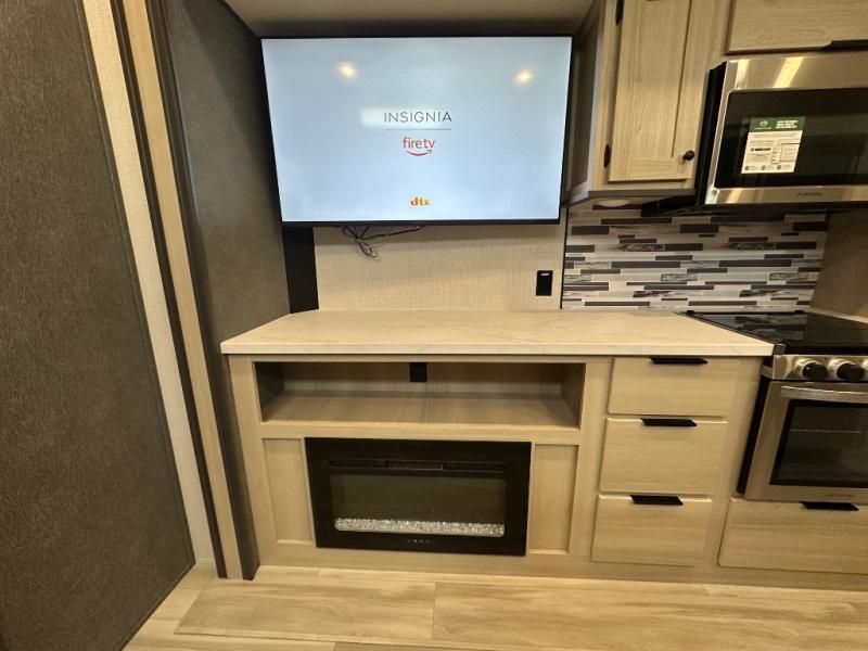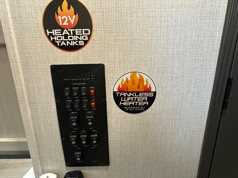 With any Wildcat fifth wheel by Forest River you will enjoy affordable luxury at every turn. These models are constructed with residential fiberglass insulation in the roof and floor, a 4'x6' sectioned underbelly armor, and a vacuum bonded, welded aluminum structure for added strength and durability. You will also find seamless roto-cast holding tanks, an outdoor shower, and 4-point auto leveling for quick and easy setup. Each model includes a best-in-class, high-efficiency 35,000 BTU furnace, along with an electric fireplace with thermostat control and remote, plus a 60,000 BTU tankless water heater for added convenience. There are carpet-free living spaces, residential backsplash, motion lighting throughout, and many more comforts!