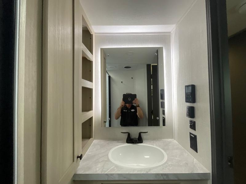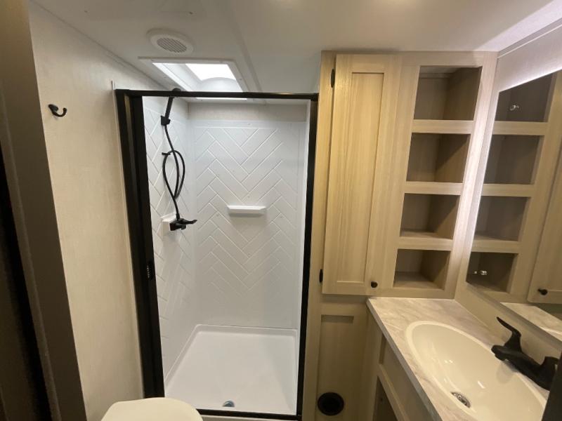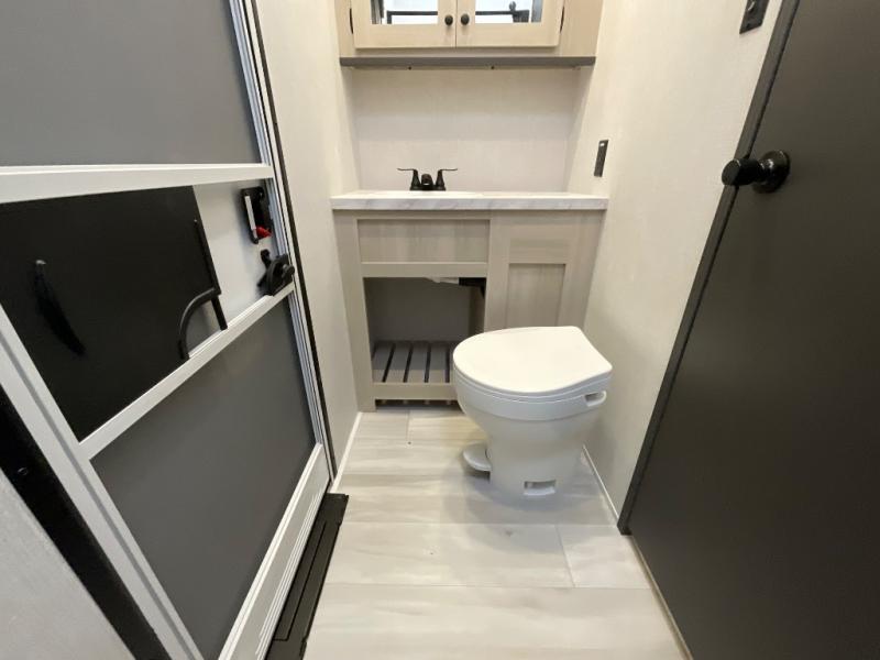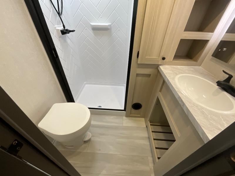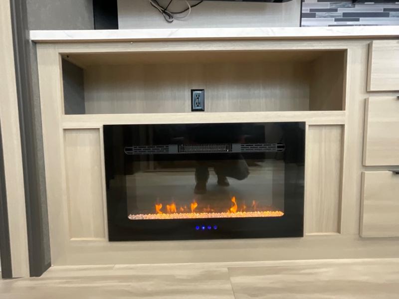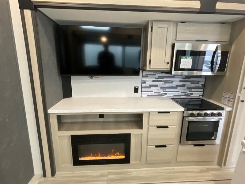 With any Wildcat fifth wheel by Forest River you will enjoy affordable luxury at every turn. These models are constructed with residential fiberglass insulation in the roof and floor, a 4'x6' sectioned underbelly armor, and a vacuum bonded, welded aluminum structure for added strength and durability. You will also find seamless roto-cast holding tanks, an outdoor shower, and 4-point auto leveling for quick and easy setup. Each model includes a best-in-class, high-efficiency 35,000 BTU furnace, along with an electric fireplace with thermostat control and remote, plus a 60,000 BTU tankless water heater for added convenience. There are carpet-free living spaces, residential backsplash, motion lighting throughout, and many more comforts!