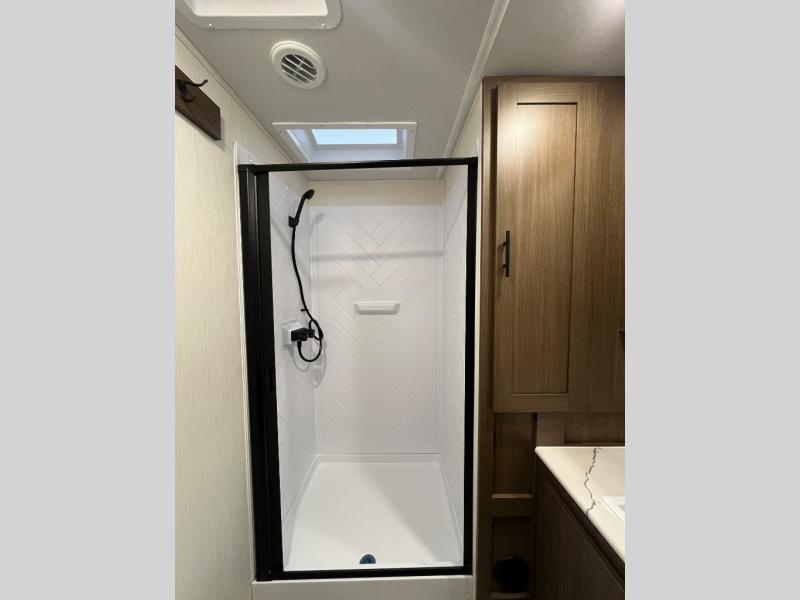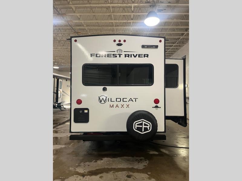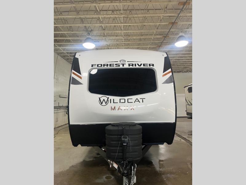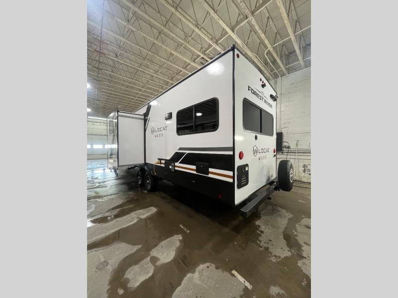 Each Forest River Wildcat MAXX travel trailer is constructed with 2" thick Vacuum-Bonded sidewalls, Maxx-strength aluminum-framed laminated floor, and reflective Astro-Foil insulation in the roof for added protection. The Dynamic Technology Package includes a frame-mounted receiver hitch, a battery disconnect, and a 200-watt solar panel for off-grid capabilities. You will also enjoy the Peak Package with a power tongue jack, solid surface kitchen countertops, a 21" 2-In-1 range and oven, an on-demand tankless water heater, and more convenient features.