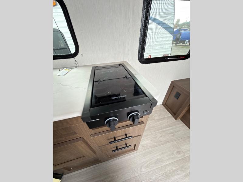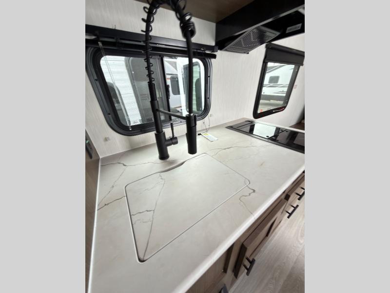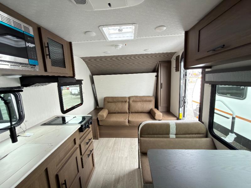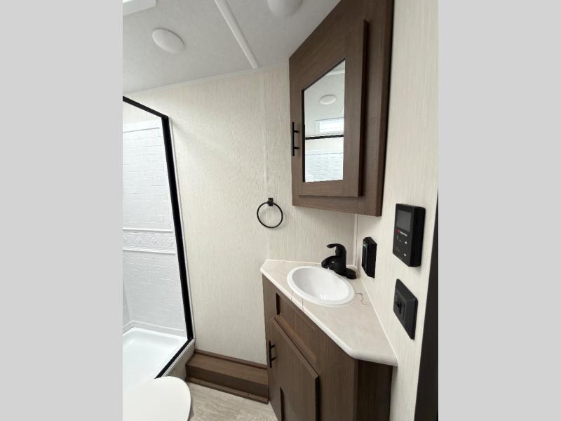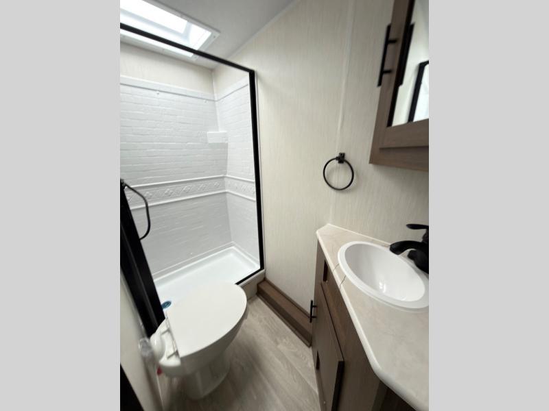 With any Wildcat ONE travel trailer by Forest River in tow, you will find fun and adventure wherever you go! Each model is constructed 2" thick Vacuum-Bonded sidewalls, a Maxx-strength aluminum-framed laminated floor, and double R-7 fiberglass insulation for added protection. These features are included with the Maxx Insulation Package, which also includes slam-latch baggage doors, a fully enclosed underbelly, and more. The Dynamic Technology Package features a 200W expandable roof mounted solar panel with a 30 amp charge controller for off-grid capabilities, backup camera prep, an exterior TV connection, and a frame-mounted receiver hitch to name a few conveniences. A front windshield is found within the Peak Package, along with a power tongue jack, solid surface kitchen countertops, friction hinge entry doors, and an exterior ladder prep.