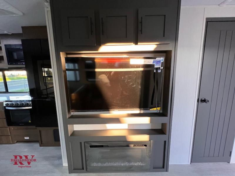 If you enjoy camping with friends and family, but still want your own space at night, this travel trailer is perfect for you! The front private bedroom includes a Maxx king bed, a bedside wardrobe, plus a second wardrobe with two drawers below. Your guest can take the mid-bunkroom that includes Cat-Nap sleepers which is a bunk with fold out mats underneath. There is also a wardrobe with three drawers and a slide out to make this room more spacious. Just outside the bunkroom is the tri-fold hide-a-bed sofa and booth dinette that are in direct view of the smart TV and fireplace. You will also fall in love with the rear kitchen that includes a skylight, plenty of counter space, a large single bowl stainless steel sink, and a 12V refrigerator!