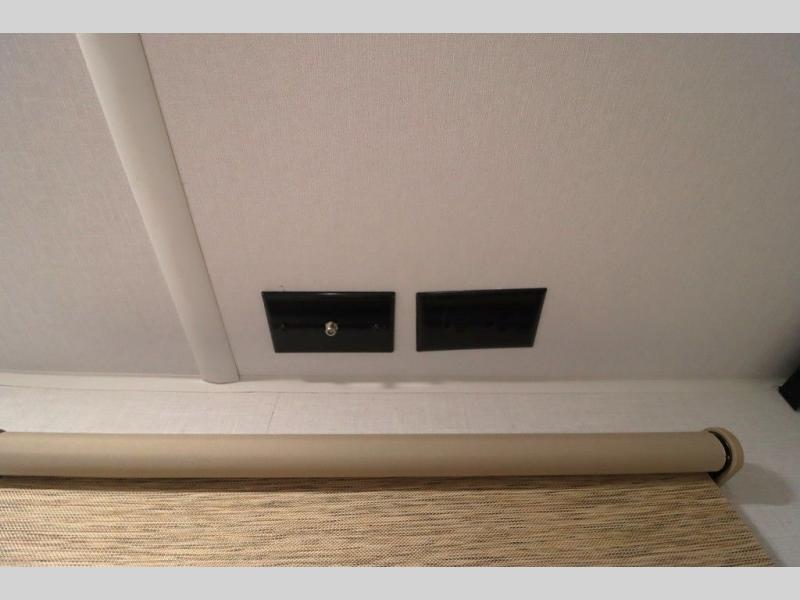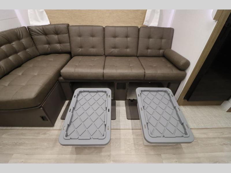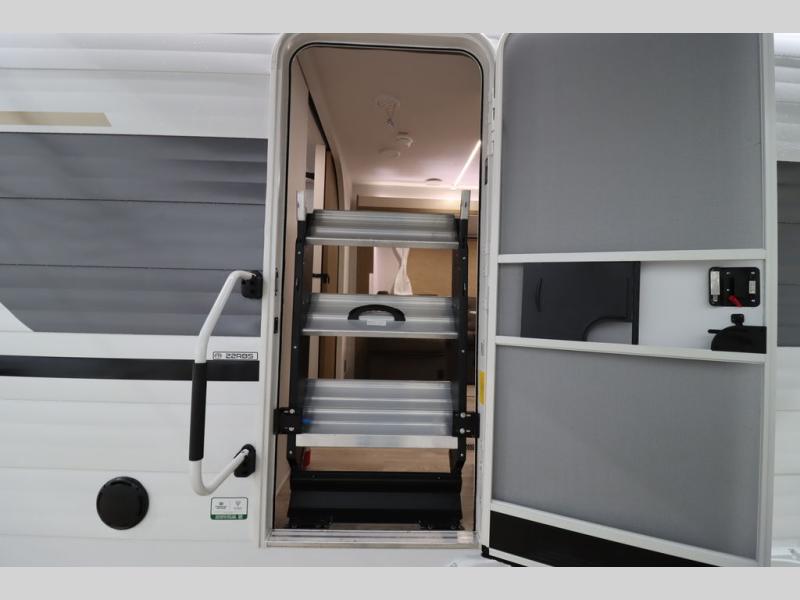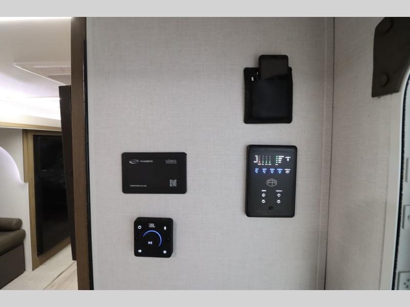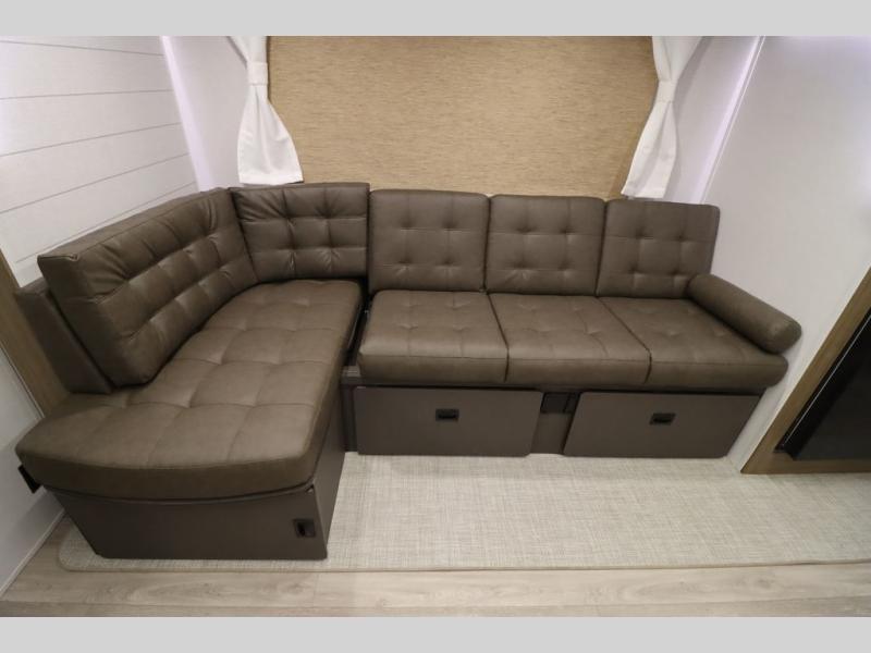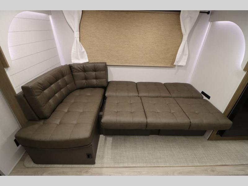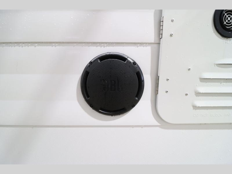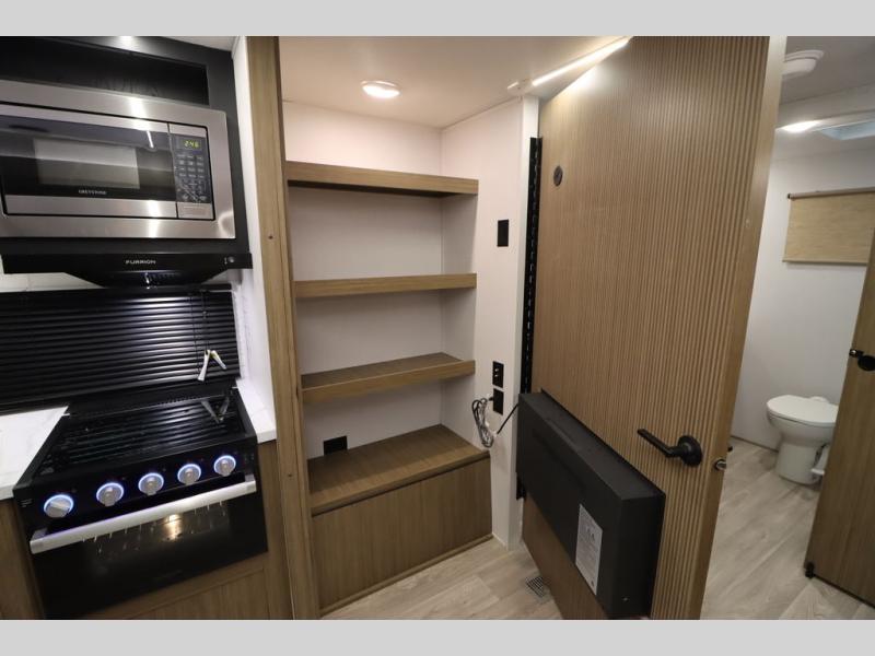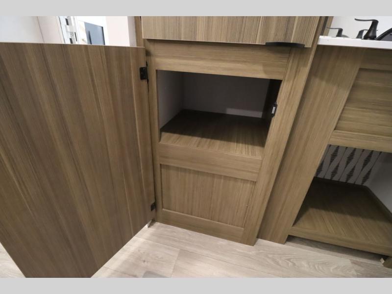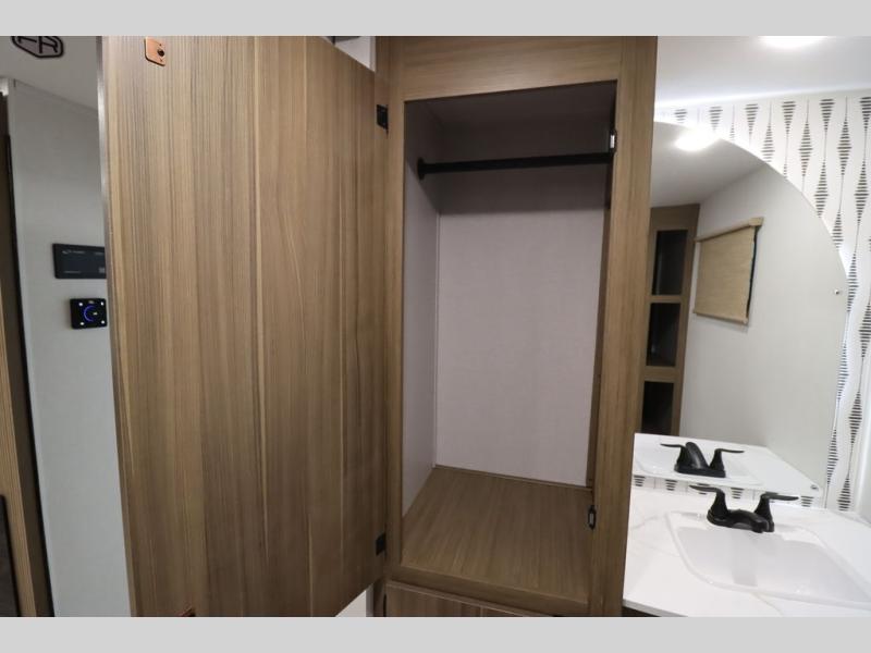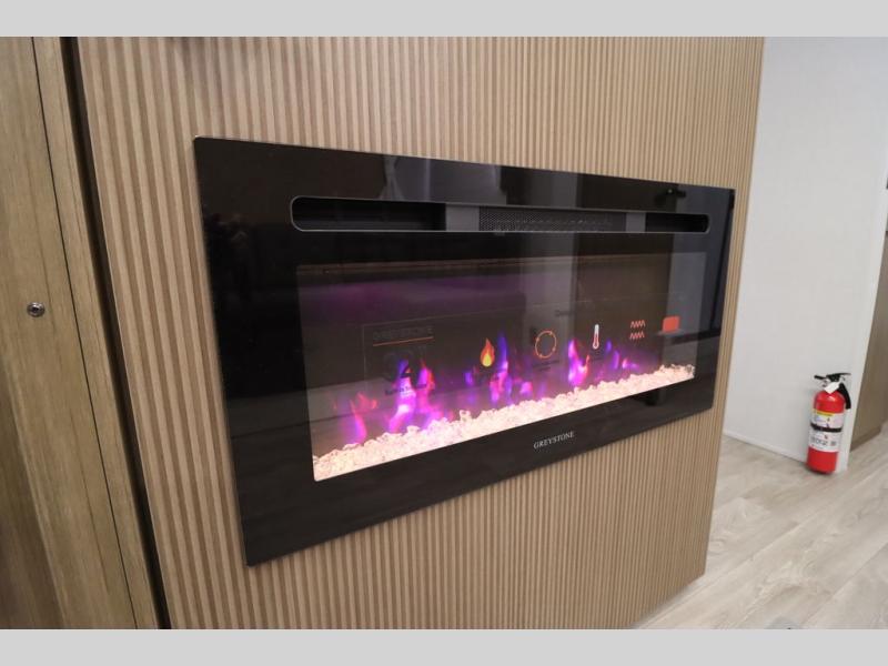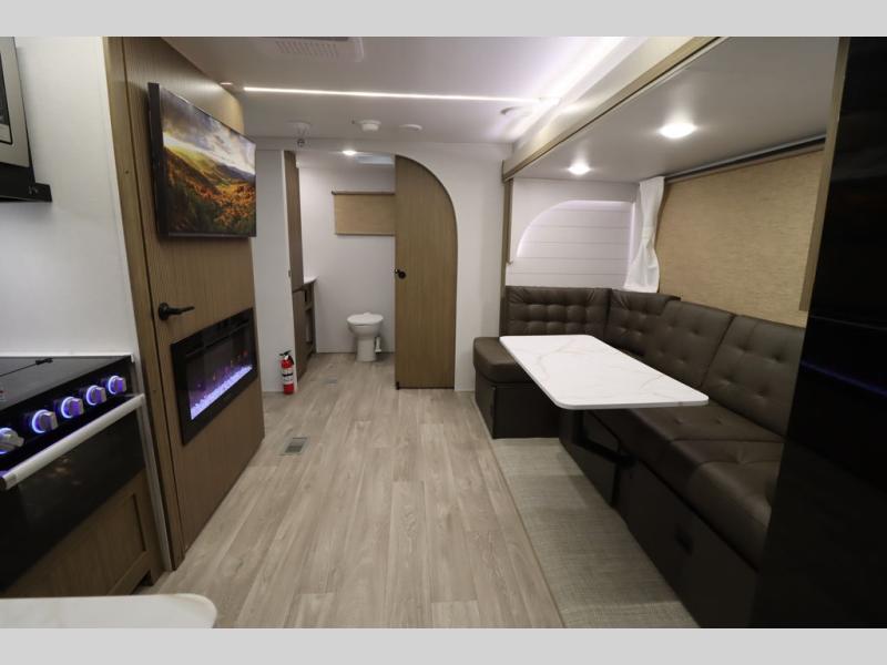 As you escape to the beautiful countryside, or embark across the country to visit family, you'll find that the modern amenities found in this Wildwood travel trailer will deliver the ultimate enjoyment all along the way! Relax on a chaise lounge that includes a table in front so that you can enjoy your morning coffee. When you are ready to face the day ahead, you can grab a towel from the linen closet in the rear bathroom and enjoy the walk-in shower before heading out for a day full of adventure. At night, a custom king bed with Versa-Tilt for a great night's rest. You will appreciate the pass-through storage, entertainment center with fireplace, and walk-in pantry for all the goodies!