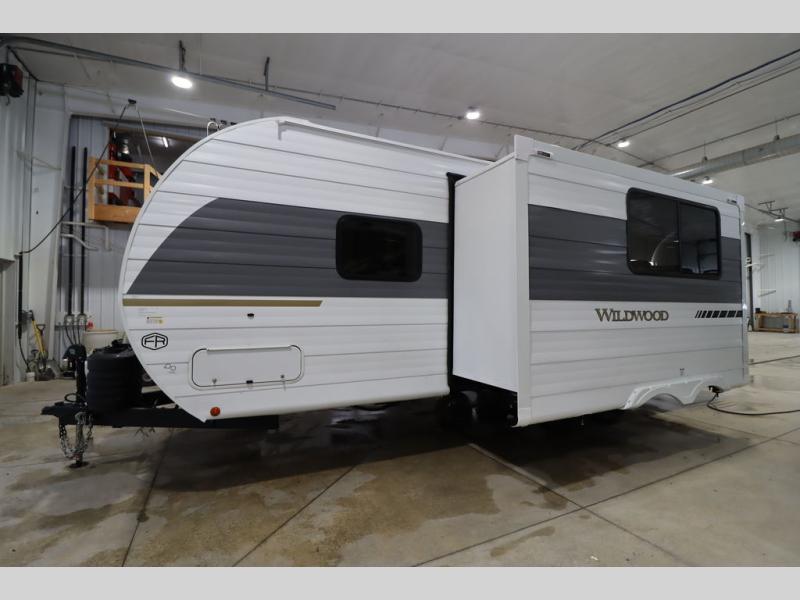 The Wildwood travel trailers are packed with hassle-free camping amenities! There are a variety of floorplans to choose so you can find the layout that best fits your needs. The heated and enclosed Accessibelly will help protect against the elements and debris during transport, and the exterior retro/metal redesign is sure to be eye-catching! There are stylish roller shades inside, along with updated backsplash, elegant curtain rods and curtains, plus many more interior comforts! Choose a Wildwood travel trailer today for quality and value!
