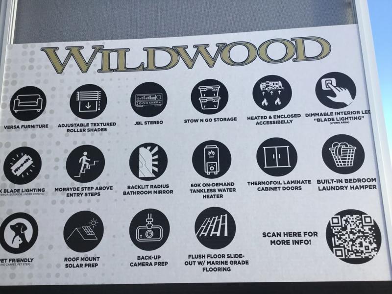 The Wildwood travel trailers are packed with hassle-free camping amenities! There are a variety of floorplans to choose from so you can find the layout that best fits your needs. The heated and enclosed Accessibelly will help protect against the elements and debris during transport, and the exterior retro/metal redesign is sure to be eye-catching! There are stylish roller shades inside, along with updated backsplash, elegant curtain rods and curtains, plus many more interior comforts! Choose a Wildwood travel trailer today for quality and value!