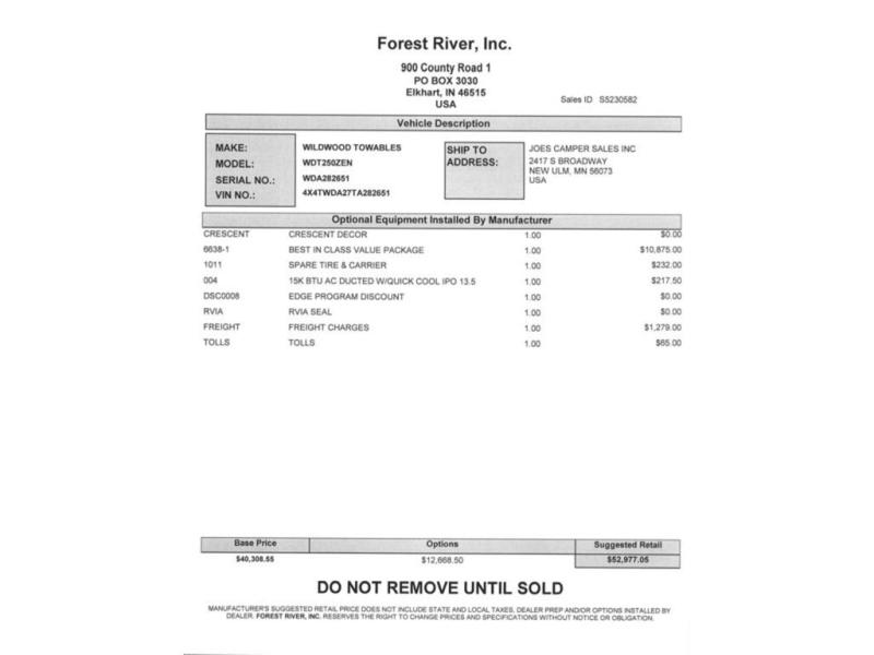 Forest River Wildwood travel trailer 250ZEN highlights: