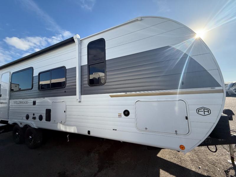 The Wildwood travel trailers are packed with hassle-free camping amenities! There are a variety of floorplans to choose from so you can find the layout that best fits your needs. The heated and enclosed Accessibelly will help protect against the elements and debris during transport, and the exterior retro/metal redesign is sure to be eye-catching! There are stylish roller shades inside, along with updated backsplash, elegant curtain rods and curtains, plus many more interior comforts! Choose a Wildwood travel trailer today for quality and value!