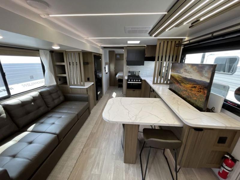 The Wildwood travel trailers are packed with hassle-free camping amenities! There are a variety of floorplans to choose from so you can find the layout that best fits your needs. The heated and enclosed Accessibelly will help protect against the elements and debris during transport, and the exterior retro/metal redesign is sure to be eye-catching! There are stylish roller shades inside, along with updated backsplash, elegant curtain rods and curtains, plus many more interior comforts! Choose a Wildwood travel trailer today for quality and value!