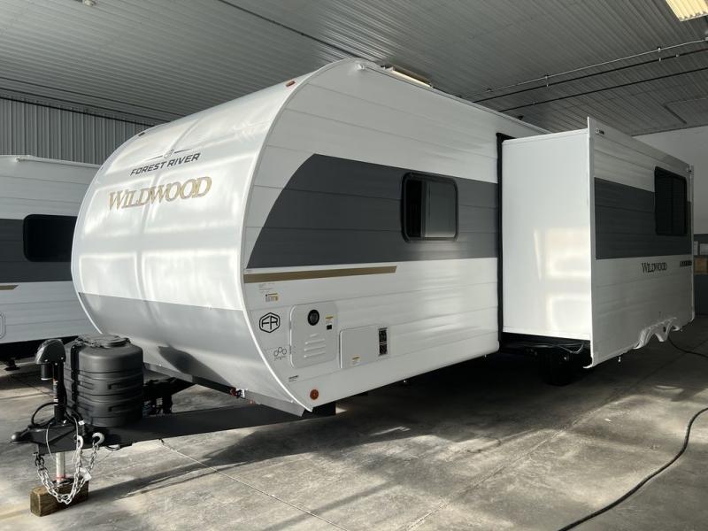 The Wildwood travel trailers are packed with hassle-free camping amenities! There are a variety of floorplans to choose from so you can find the layout that best fits your needs. The heated and enclosed Accessibelly will help protect against the elements and debris during transport, and the exterior retro/metal redesign is sure to be eye-catching! There are stylish roller shades inside, along with updated backsplash, elegant curtain rods and curtains, plus many more interior comforts! Choose a Wildwood travel trailer today for quality and value!