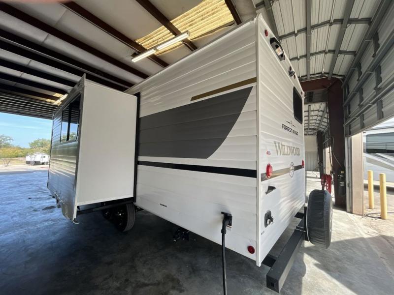 The Wildwood travel trailers are packed with hassle-free camping amenities! There are a variety of floorplans to choose from so you can find the layout that best fits your needs. The heated and enclosed Accessibelly will help protect against the elements and debris during transport, and the exterior retro/metal redesign is sure to be eye-catching! There are stylish roller shades inside, along with updated backsplash, elegant curtain rods and curtains, plus many more interior comforts! Choose a Wildwood travel trailer today for quality and value!