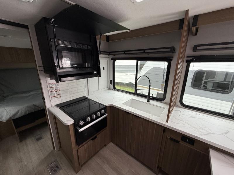 The Wildwood travel trailers are packed with hassle-free camping amenities! There are a variety of floorplans to choose from so you can find the layout that best fits your needs. The heated and enclosed Accessibelly will help protect against the elements and debris during transport, and the exterior retro/metal redesign is sure to be eye-catching! There are stylish roller shades inside, along with updated backsplash, elegant curtain rods and curtains, plus many more interior comforts! Choose a Wildwood travel trailer today for quality and value!