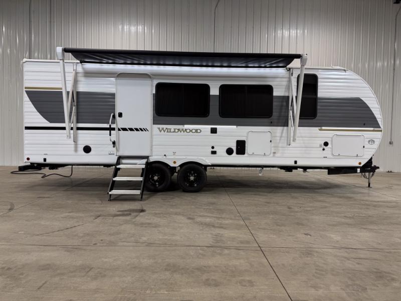 The Wildwood travel trailers are packed with hassle-free camping amenities! There are a variety of floorplans to choose from so you can find the layout that best fits your needs. The heated and enclosed Accessibelly will help protect against the elements and debris during transport, and the exterior retro/metal redesign is sure to be eye-catching! There are stylish roller shades inside, along with updated backsplash, elegant curtain rods and curtains, plus many more interior comforts! Choose a Wildwood travel trailer today for quality and value!