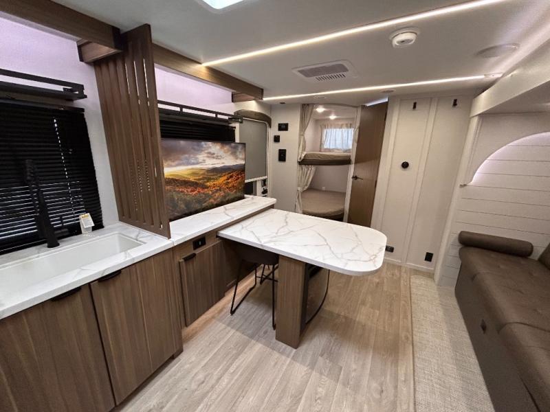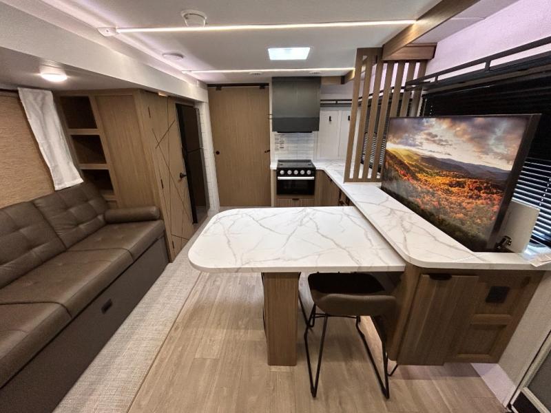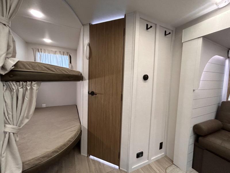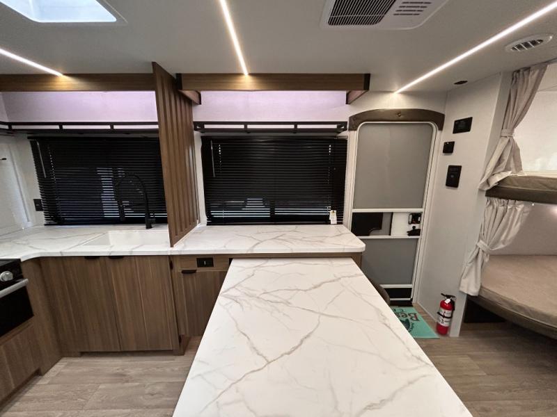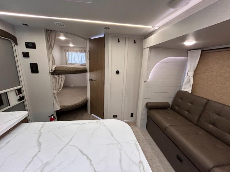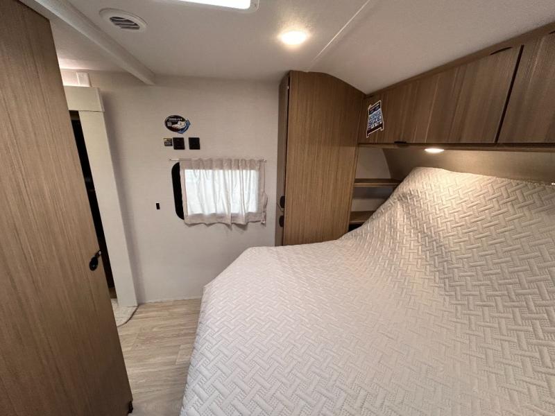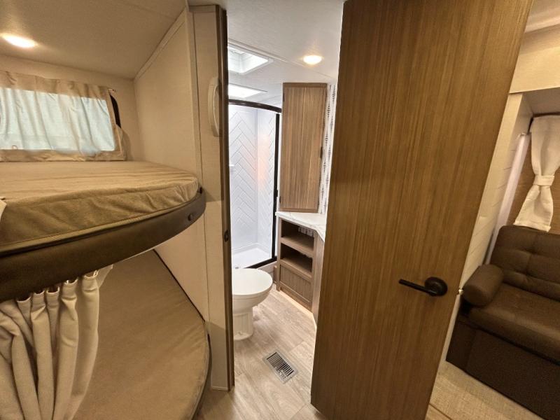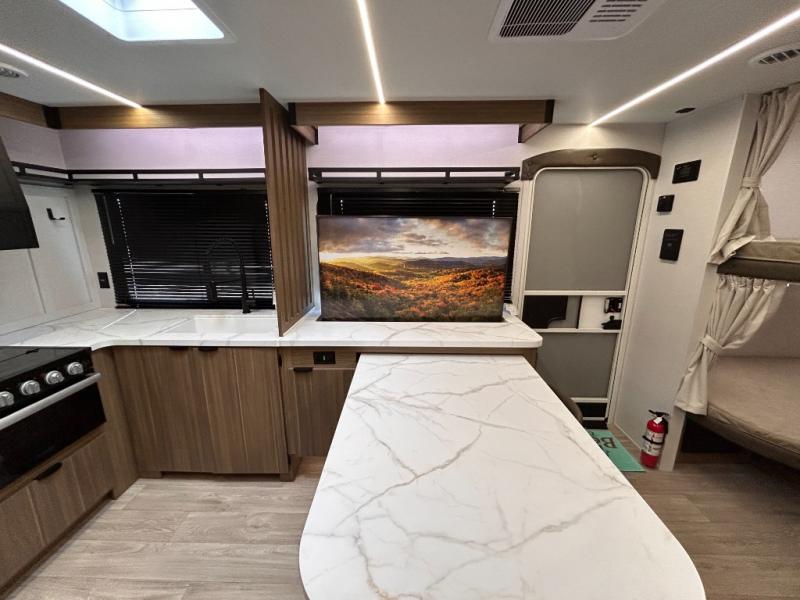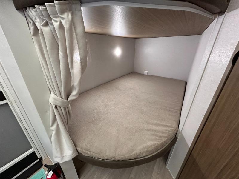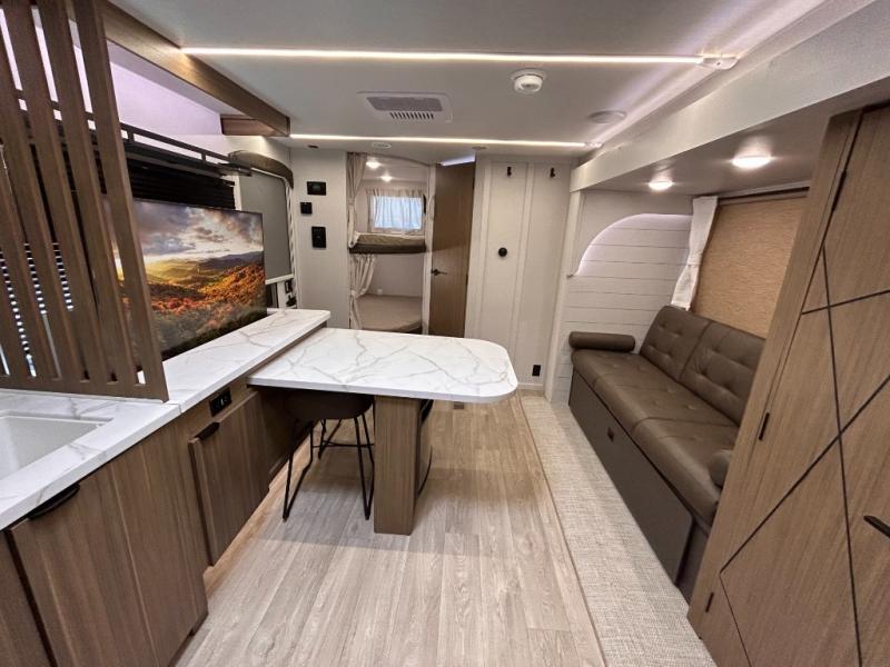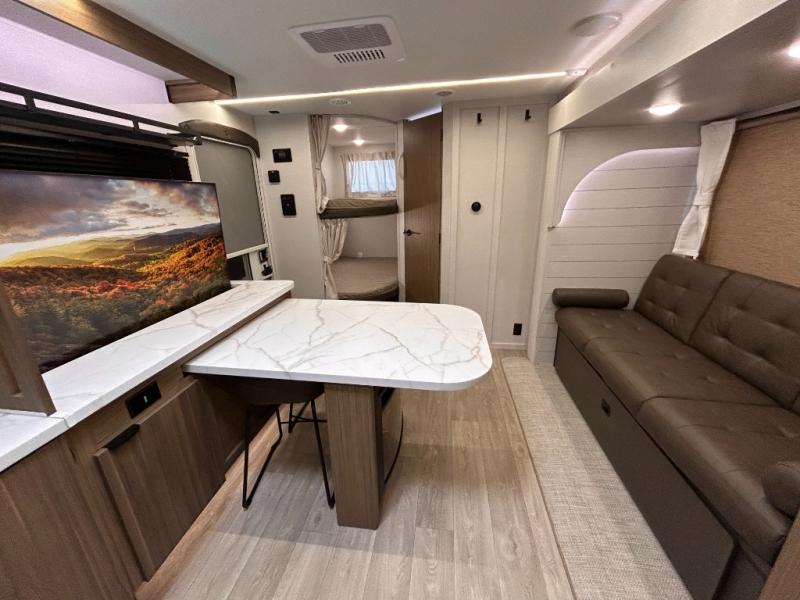Double-Size Bunks / Front Private Bedroom With Versa Tilt King Bed / Pull-Out Dining Table / All Power Jacks / 200 W Solar Panel