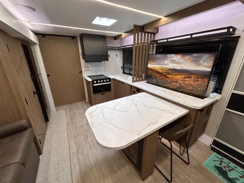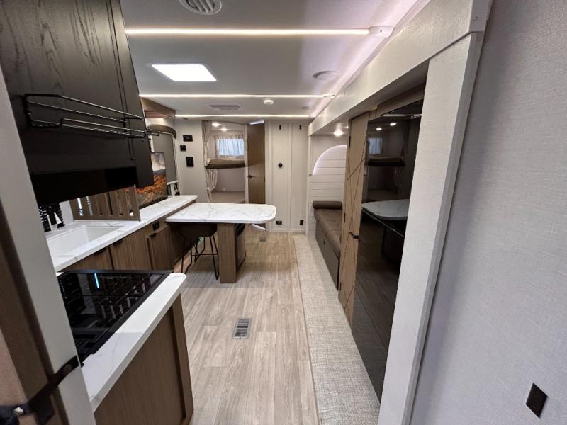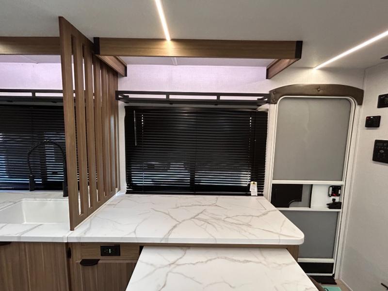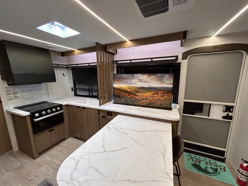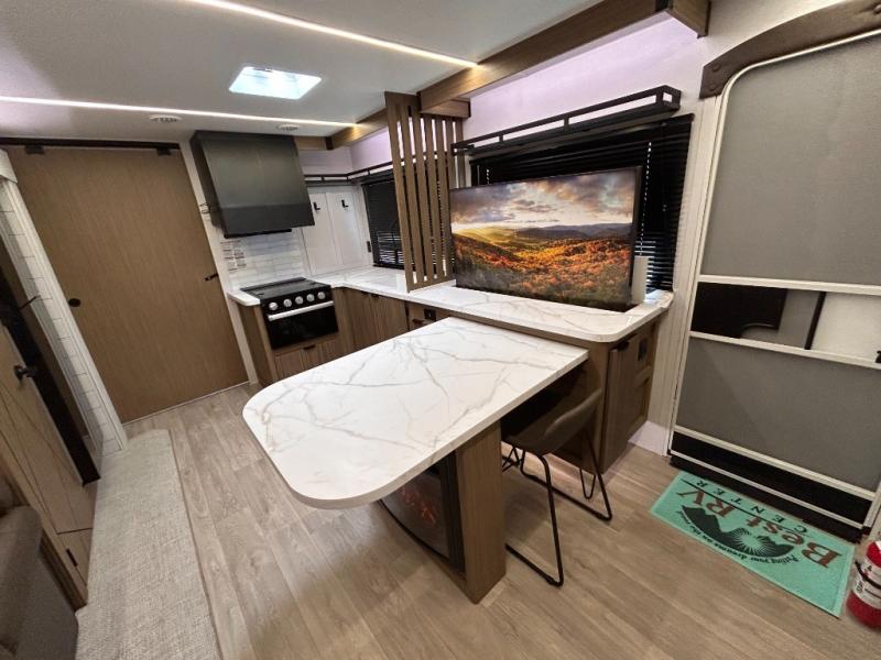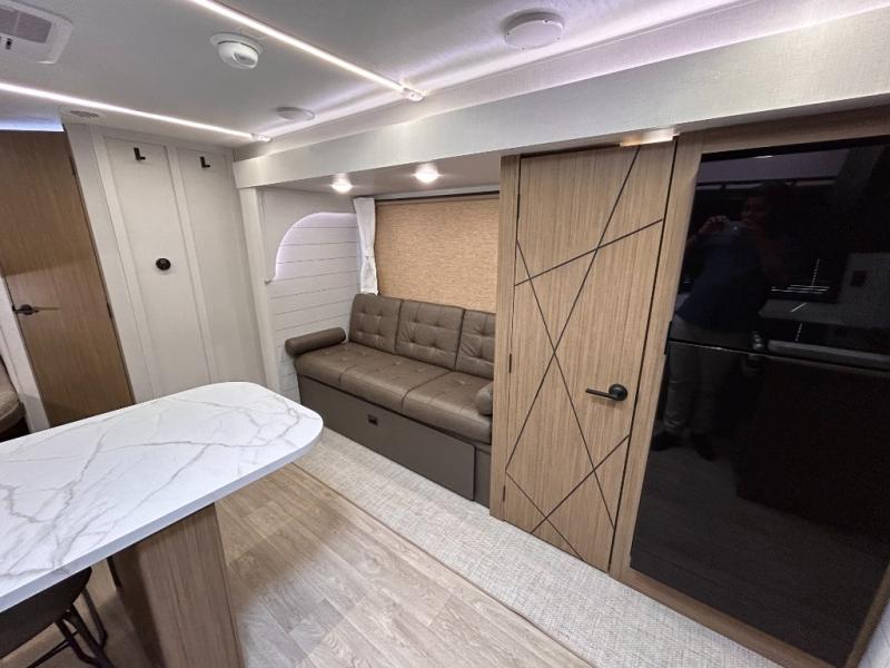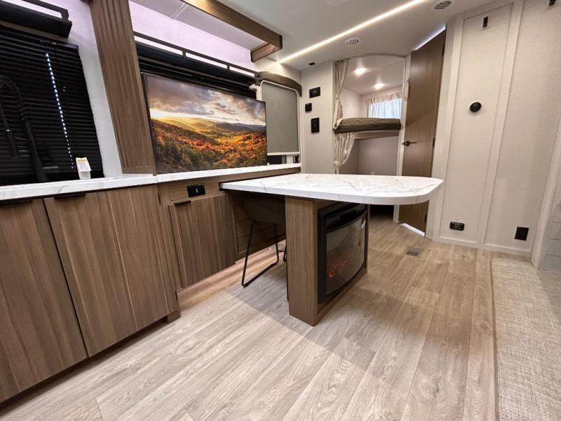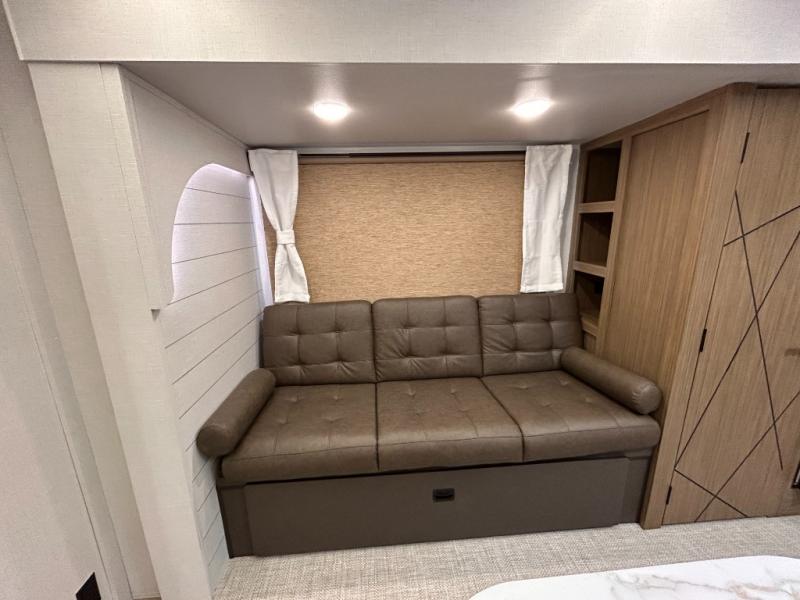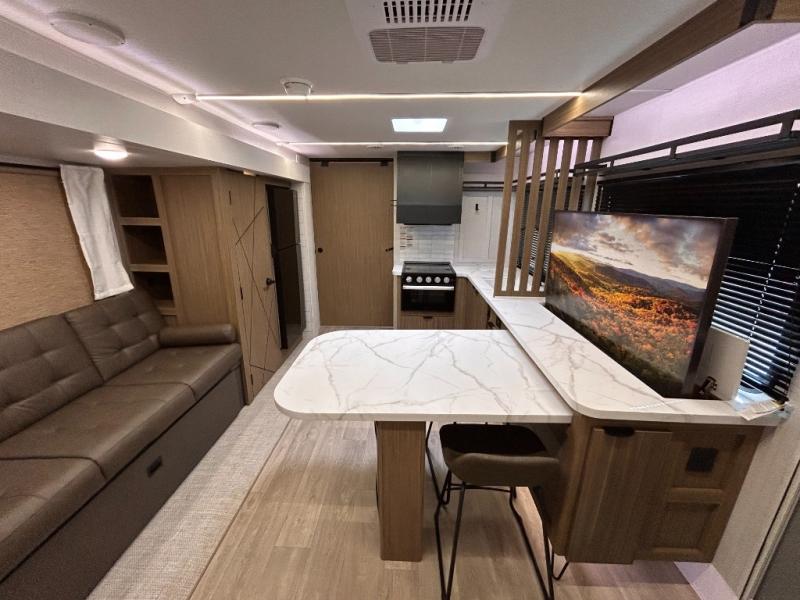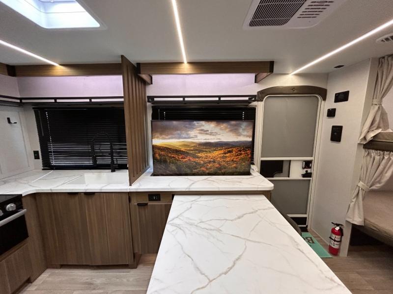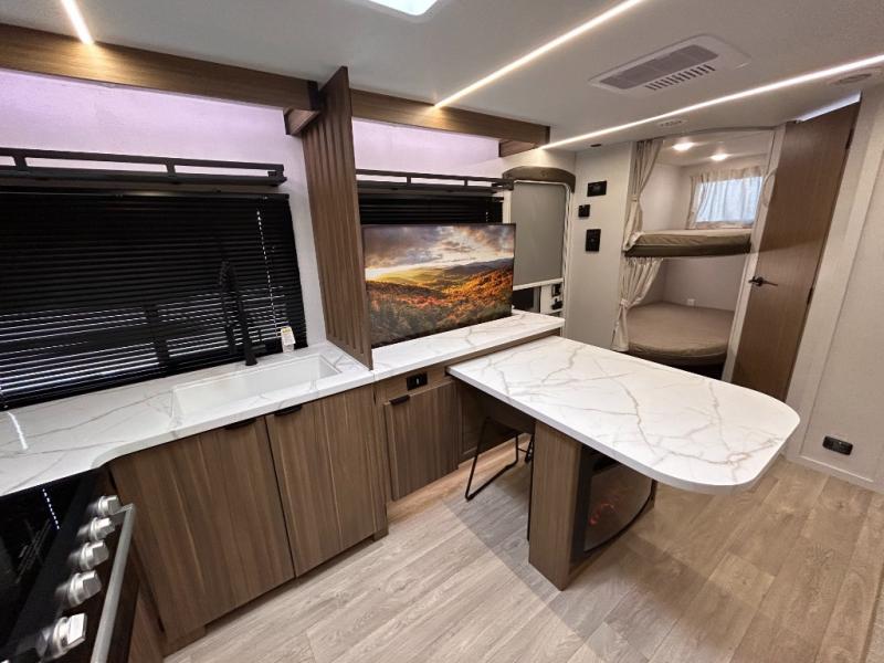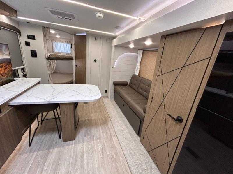 Double-Size Bunks / Front Private Bedroom With Versa Tilt King Bed / Pull-Out Dining Table / All Power Jacks / 200 W Solar Panel
