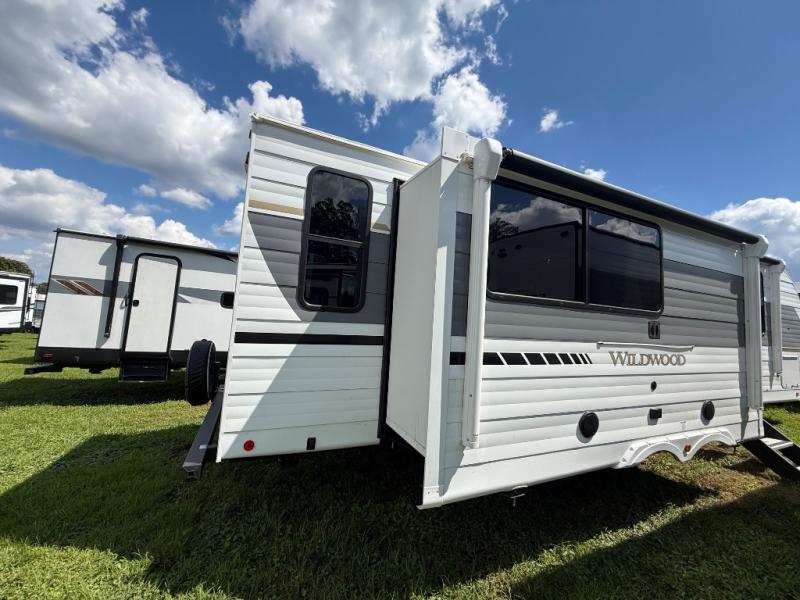 The Wildwood travel trailers are packed with hassle-free camping amenities! There are a variety of floorplans to choose from so you can find the layout that best fits your needs. The heated and enclosed Accessibelly will help protect against the elements and debris during transport, and the exterior retro/metal redesign is sure to be eye-catching! There are stylish roller shades inside, along with updated backsplash, elegant curtain rods and curtains, plus many more interior comforts! Choose a Wildwood travel trailer today for quality and value!