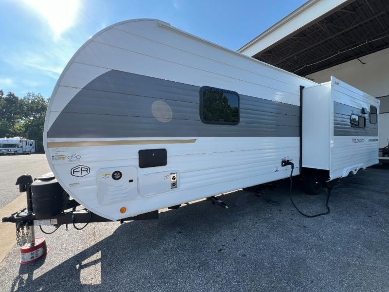 The Wildwood travel trailers are packed with hassle-free camping amenities! There are a variety of floorplans to choose from so you can find the layout that best fits your needs. The heated and enclosed Accessibelly will help protect against the elements and debris during transport, and the exterior retro/metal redesign is sure to be eye-catching! There are stylish roller shades inside, along with updated backsplash, elegant curtain rods and curtains, plus many more interior comforts! Choose a Wildwood travel trailer today for quality and value!