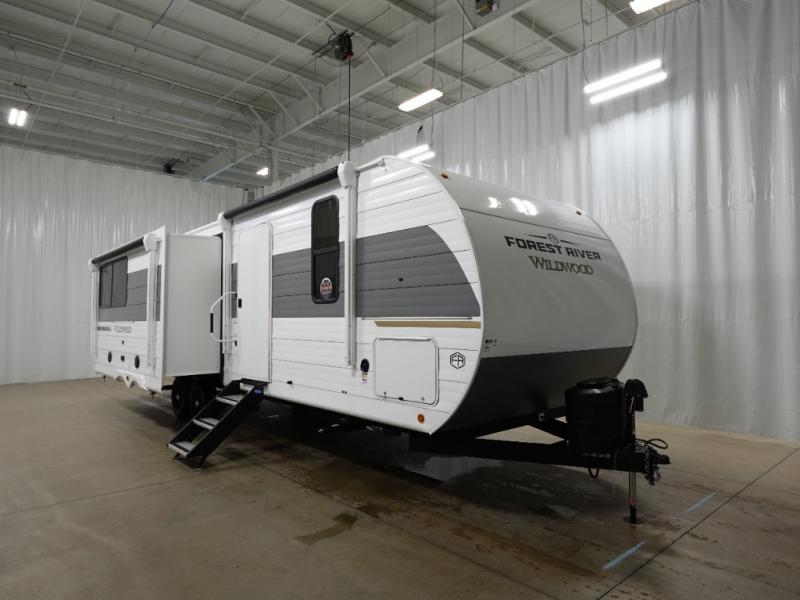 The Wildwood travel trailers are packed with hassle-free camping amenities! There are a variety of floorplans to choose from so you can find the layout that best fits your needs. The heated and enclosed Accessibelly will help protect against the elements and debris during transport, and the exterior retro/metal redesign is sure to be eye-catching! There are stylish roller shades inside, along with updated backsplash, elegant curtain rods and curtains, plus many more interior comforts! Choose a Wildwood travel trailer today for quality and value!