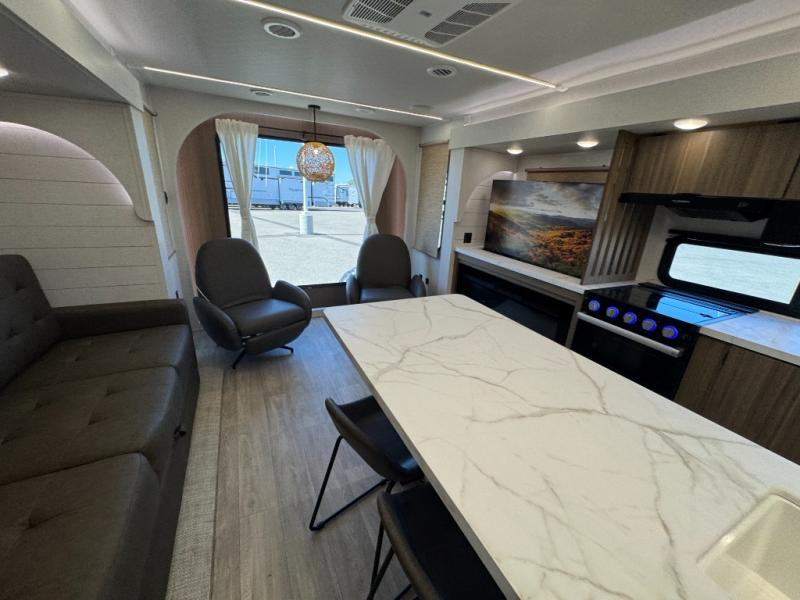 UNIQUE REAR LIVING / PICTURE WINDOW / CUSTOMS RECLINERS / VERSA TILT KING BED / 2 AC / SOLAR SYSTEM