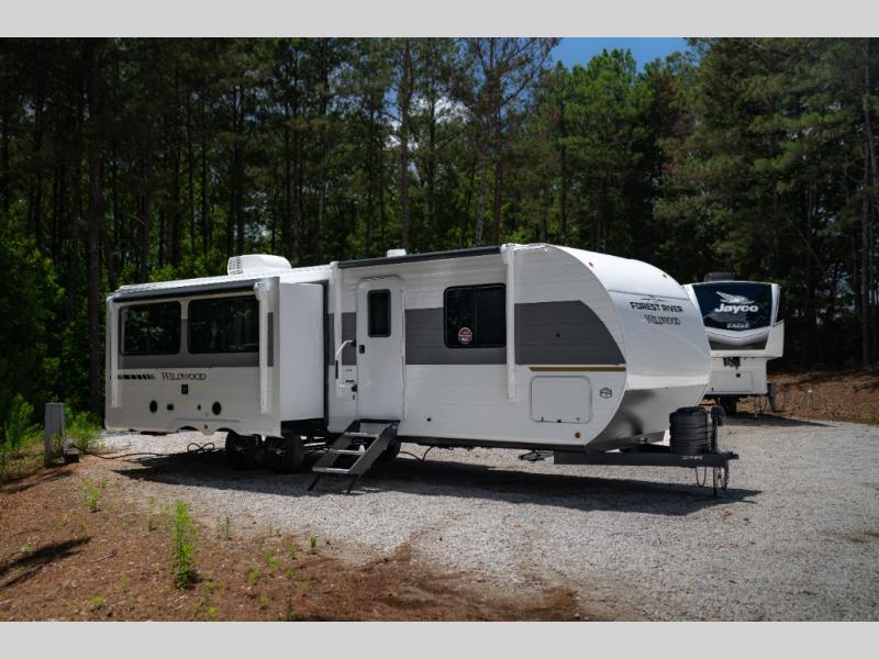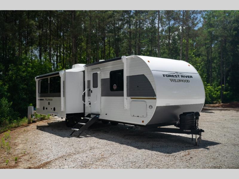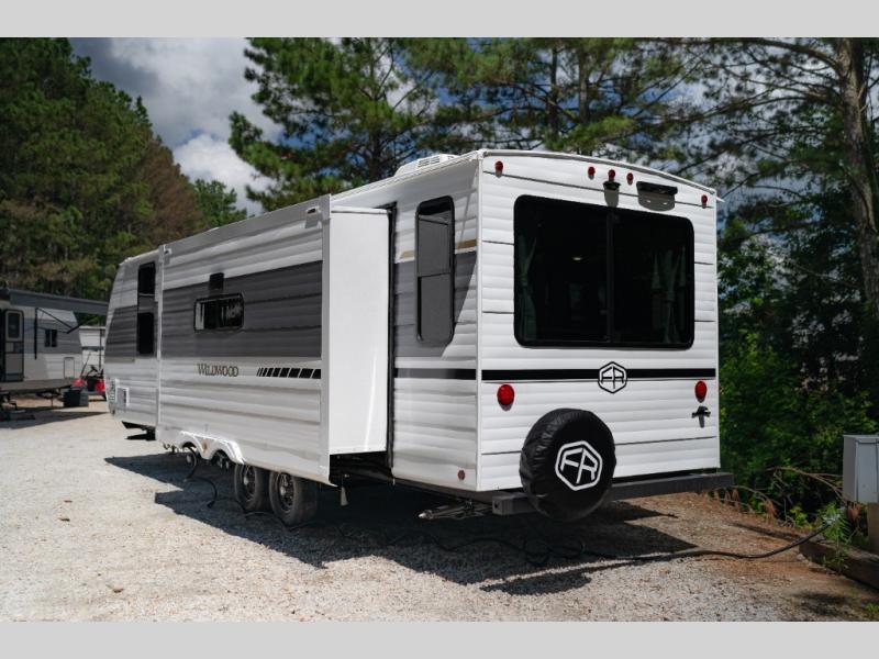The 2026 Forest River Wildwood 27RE delivers residential comfort on the road with dual opposing slide-outs, a rear entertainment center with panoramic windows, and a spacious kitchen—perfect for couples or small families seeking style, space,