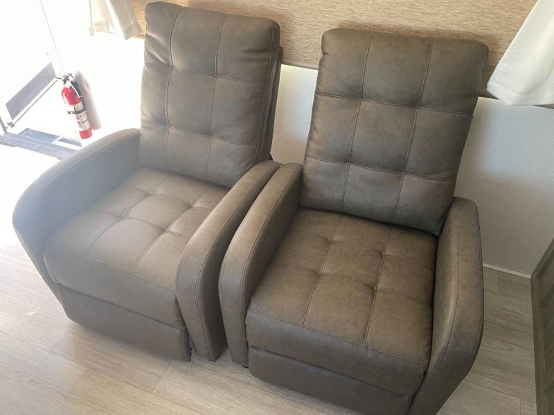 This Wildwood travel trailer is perfect for your family looking for a new adventure. You will enjoy the rear kitchen that includes an oversized refrigerator and cooktop. The Versa-Lounge will provide comfortable seating and sleeping space, and the Versa Flex table gives you a space to dine and work if needed. This unit also includes two lounge chairs so you'll feel right at home! You'll love the full bath in this unit, and the custom king bed with Versa-Tilt in the private bedroom is perfect for a good night's rest.