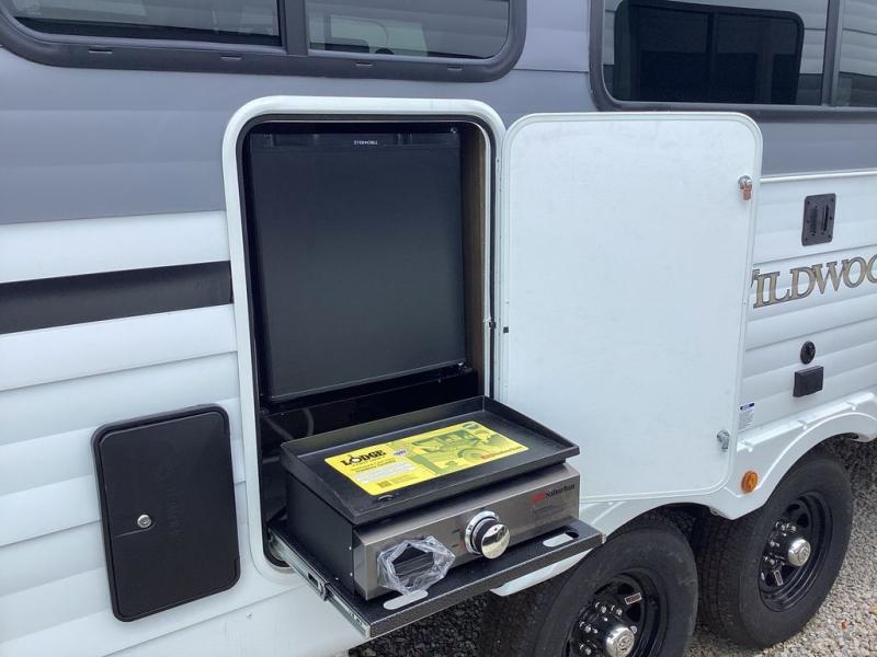 The Wildwood travel trailers are packed with hassle-free camping amenities! There are a variety of floorplans to choose from so you can find the layout that best fits your needs. The heated and enclosed Accessibelly will help protect against the elements and debris during transport, and the exterior retro/metal redesign is sure to be eye-catching! There are stylish roller shades inside, along with updated backsplash, elegant curtain rods and curtains, plus many more interior comforts! Choose a Wildwood travel trailer today for quality and value!