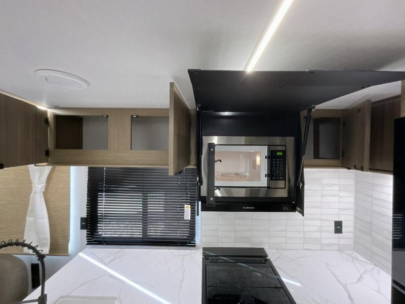 The Wildwood travel trailers are packed with hassle-free camping amenities! There are a variety of floorplans to choose from so you can find the layout that best fits your needs. The heated and enclosed Accessibelly will help protect against the elements and debris during transport, and the exterior retro/metal redesign is sure to be eye-catching! There are stylish roller shades inside, along with updated backsplash, elegant curtain rods and curtains, plus many more interior comforts! Choose a Wildwood travel trailer today for quality and value!