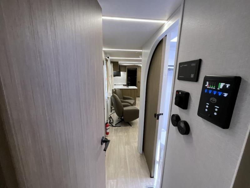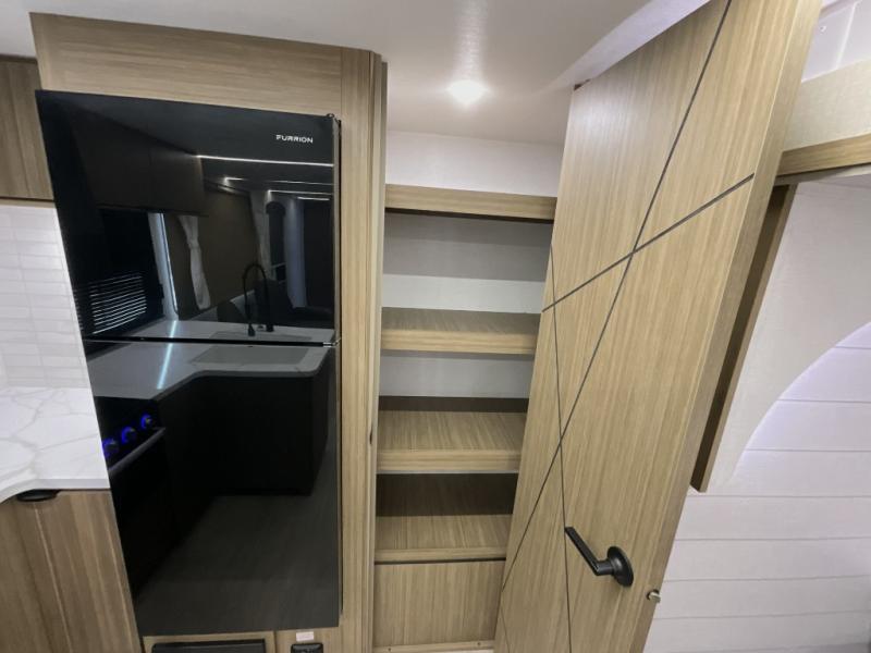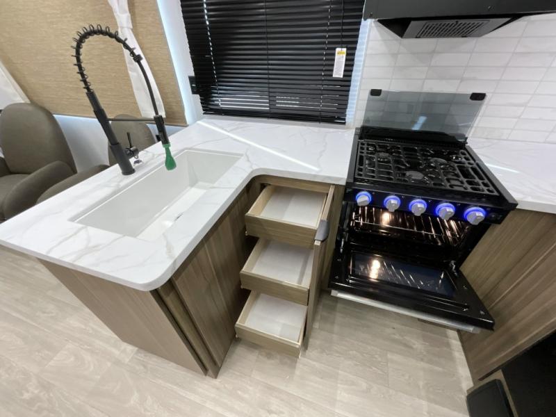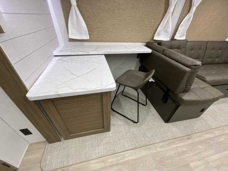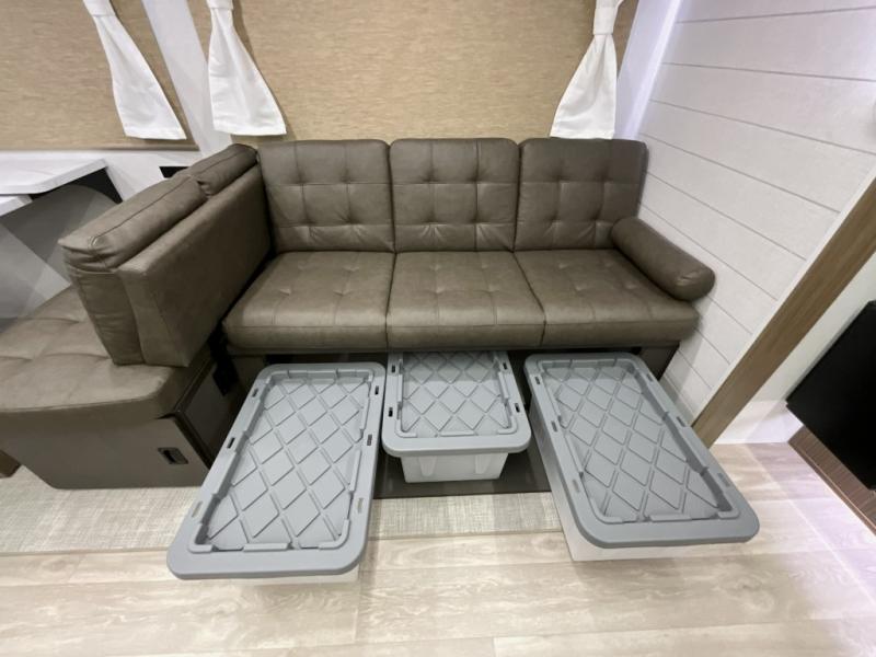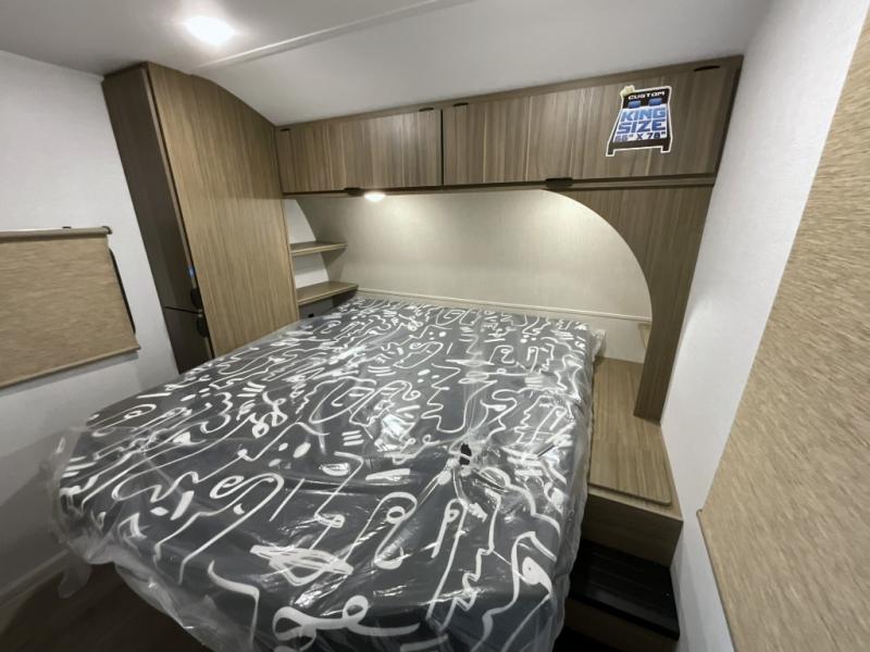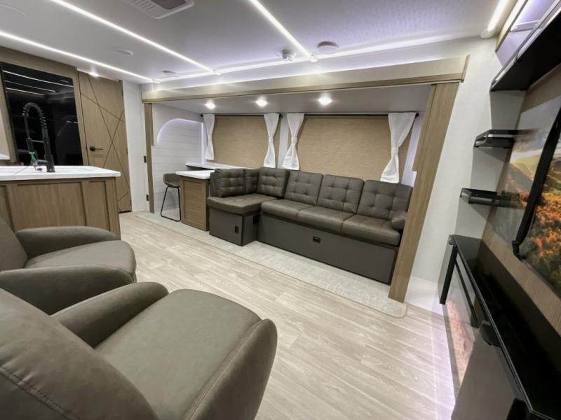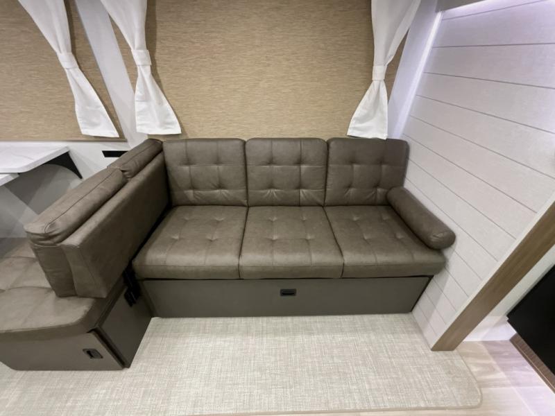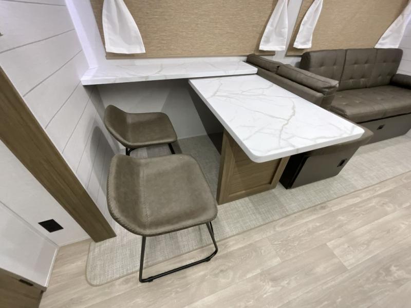 This Wildwood travel trailer is perfect for your family looking for a new adventure. You will enjoy the rear kitchen that includes an oversized refrigerator and cooktop. The Versa-Lounge will provide comfortable seating and sleeping space, and the Versa Flex table gives you a space to dine and work if needed. This unit also includes two lounge chairs so you'll feel right at home! You'll love the full bath in this unit, and the custom king bed with Versa-Tilt in the private bedroom is perfect for a good night's rest.