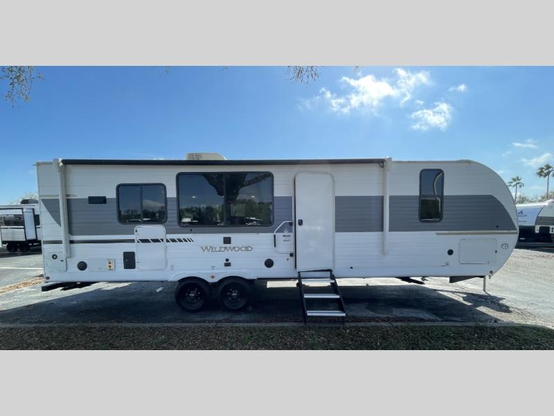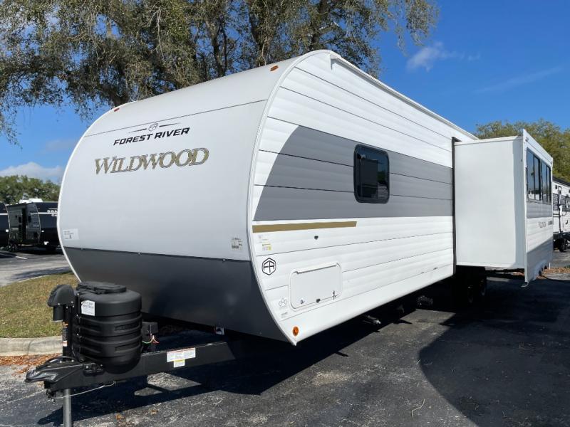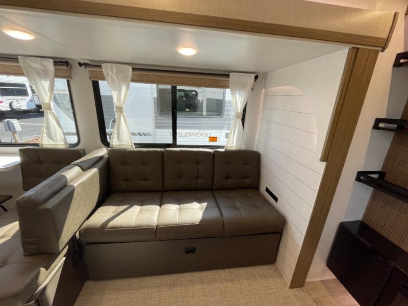The Wildwood travel trailers are packed with hassle-free camping amenities! There are a variety of floorplans to choose from so you can find the layout that best fits your needs. The heated and enclosed Accessibelly will help protect against the elements and debris during transport, and the exterior retro/metal redesign is sure to be eye-catching! There are stylish roller shades inside, along with updated backsplash, elegant curtain rods and curtains, plus many more interior comforts! Choose a Wildwood travel trailer today for quality and value!
