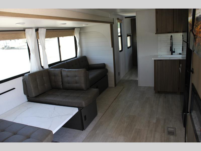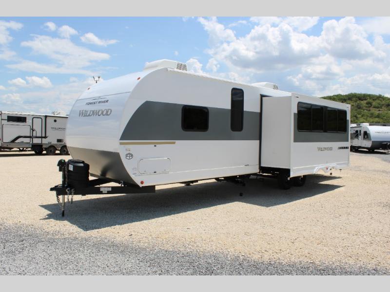 The Wildwood travel trailers are packed with hassle-free camping amenities! There are a variety of floorplans to choose from so you can find the layout that best fits your needs. The heated and enclosed Accessibelly will help protect against the elements and debris during transport, and the fiberglass exterior is sure to be eye-catching! There are stylish roller shades inside, along with updated backsplash, elegant curtain rods and curtains, plus many more interior comforts! Choose a Wildwood travel trailer today for quality and value!