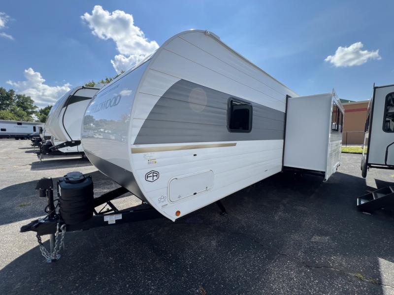 The Wildwood travel trailers are packed with hassle-free camping amenities! There are a variety of floorplans to choose from so you can find the layout that best fits your needs. The heated and enclosed Accessibelly will help protect against the elements and debris during transport, and the exterior retro/metal redesign is sure to be eye-catching! There are stylish roller shades inside, along with updated backsplash, elegant curtain rods and curtains, plus many more interior comforts! Choose a Wildwood travel trailer today for quality and value!