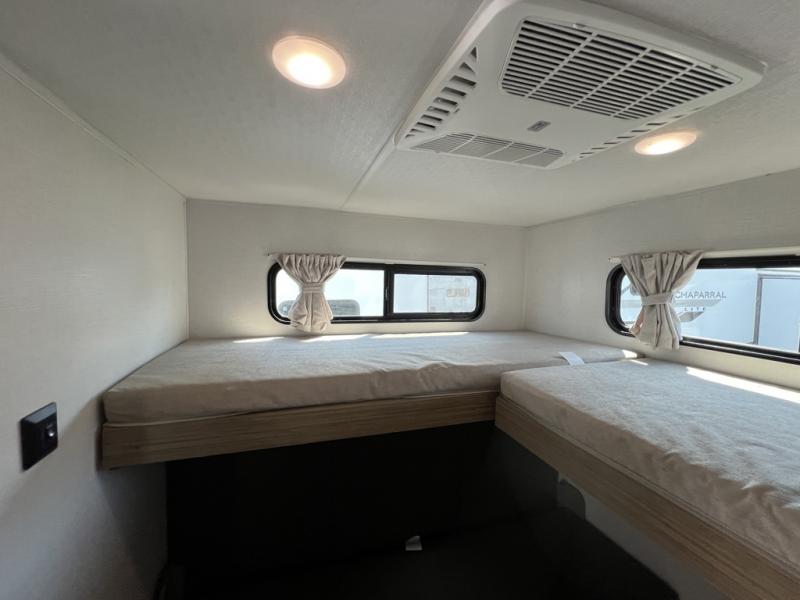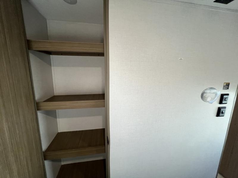 When you're ready to upgrade your RV to a unit with more sleeping space and comfort, choose this Wildwood travel trailer, and you'll never look back. After setting up camp, put out the large slide and prepare lunch indoors or outside at the exterior camp kitchen, and the 18' power awning will shade you from the sun. The kids will find all their snacks in the walk-in pantry, and they can grab a cold drink from the refrigerator. The Versa-Lounge and Versa Flex table offer plenty of seating, dining, and sleeping space. This model features a rear private bunkhouse with a Versa queen bed and two Versa bunks, and you will love the front private bedroom that includes a custom king bed with Versa-Tilt and dual bedside closets.