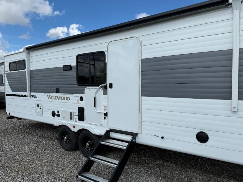 The Wildwood travel trailers are packed with hassle-free camping amenities! There are a variety of floorplans to choose from so you can find the layout that best fits your needs. The heated and enclosed Accessibelly will help protect against the elements and debris during transport, and the exterior retro/metal redesign is sure to be eye-catching! There are stylish roller shades inside, along with updated backsplash, elegant curtain rods and curtains, plus many more interior comforts! Choose a Wildwood travel trailer today for quality and value!