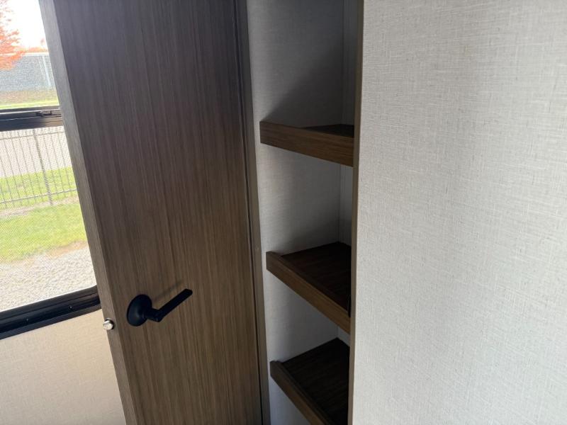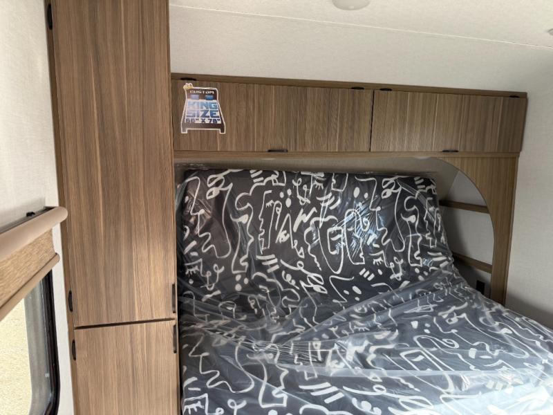 When you're ready to upgrade your RV to a unit with more sleeping space and comfort, choose this Wildwood travel trailer, and you'll never look back. After setting up camp, put out the large slide and prepare lunch indoors or outside at the exterior camp kitchen, and the 18' power awning will shade you from the sun. The kids will find all their snacks in the walk-in pantry, and they can grab a cold drink from the refrigerator. The Versa-Lounge and Versa Flex table offer plenty of seating, dining, and sleeping space. This model features a rear private bunkhouse with a Versa queen bed and two Versa bunks, and you will love the front private bedroom that includes a custom king bed with Versa-Tilt and dual bedside closets.