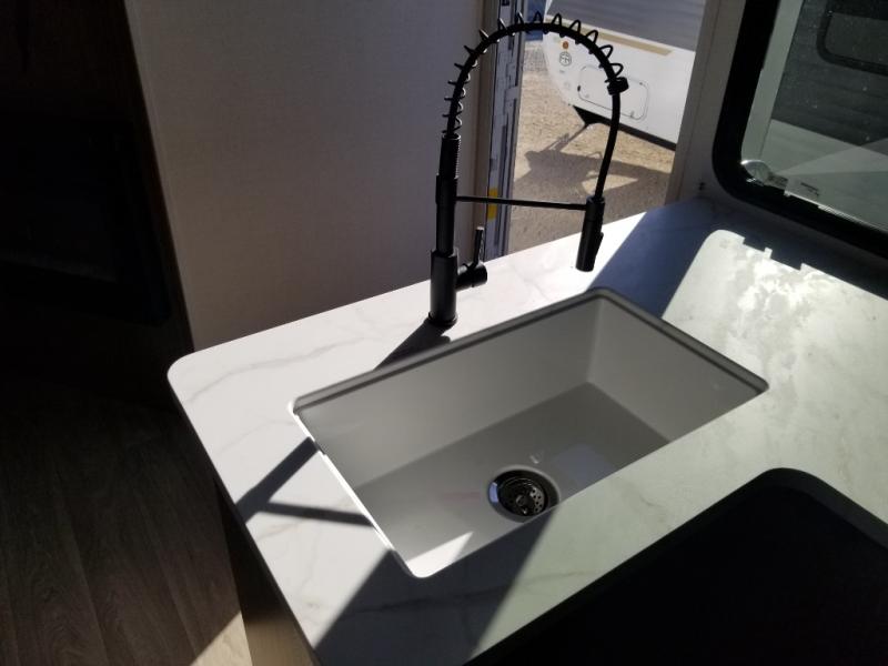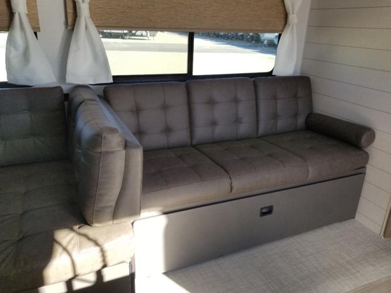 When you're ready to upgrade your RV to a unit with more sleeping space and comfort, choose this Wildwood Platinum travel trailer, and you'll never look back. After setting up camp, put out the large slide and prepare lunch indoors or outside at the exterior camp kitchen, and the 18' power awning will shade you from the sun. The kids will find all their snacks in the walk-in pantry, and they can grab a cold drink from the refrigerator. The Versa-Lounge and Versa Flex table offer plenty of seating, dining, and sleeping space. This model features a rear private bunkhouse with a Versa queen bed and two Versa bunks, and you will love the front private bedroom that includes a custom king bed and dual bedside closets.