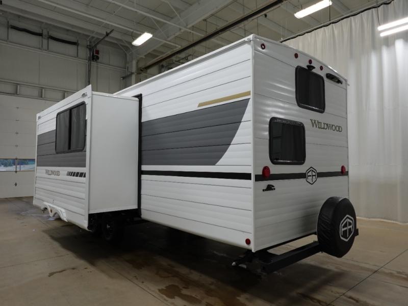 The Wildwood travel trailers are packed with hassle-free camping amenities! There are a variety of floorplans to choose from so you can find the layout that best fits your needs. The heated and enclosed Accessibelly will help protect against the elements and debris during transport, and the exterior retro/metal redesign is sure to be eye-catching! There are stylish roller shades inside, along with updated backsplash, elegant curtain rods and curtains, plus many more interior comforts! Choose a Wildwood travel trailer today for quality and value!
