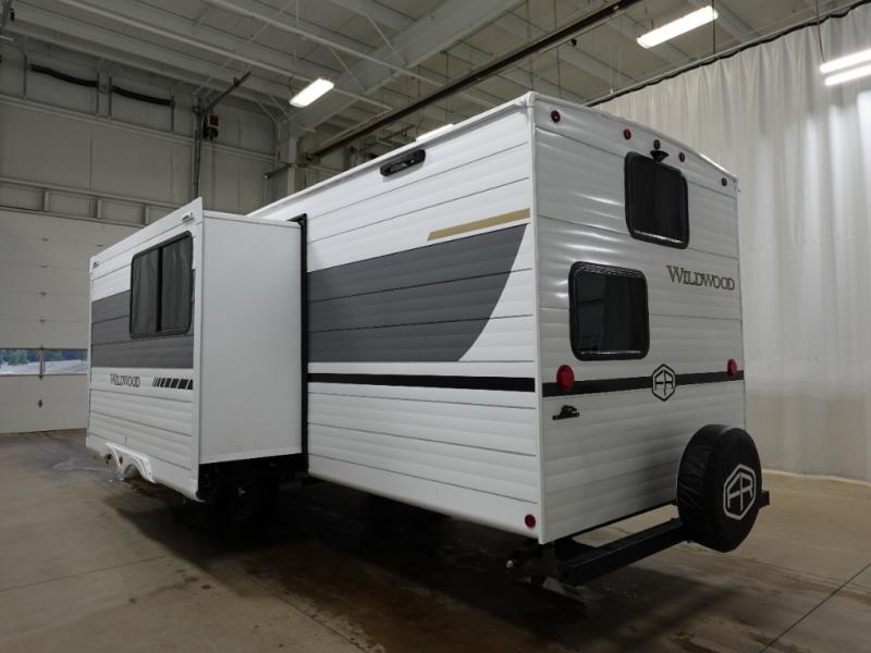 The Wildwood travel trailers are packed with hassle-free camping amenities! There are a variety of floorplans to choose from so you can find the layout that best fits your needs. The heated and enclosed Accessibelly will help protect against the elements and debris during transport, and the exterior retro/metal redesign is sure to be eye-catching! There are stylish roller shades inside, along with updated backsplash, elegant curtain rods and curtains, plus many more interior comforts! Choose a Wildwood travel trailer today for quality and value!