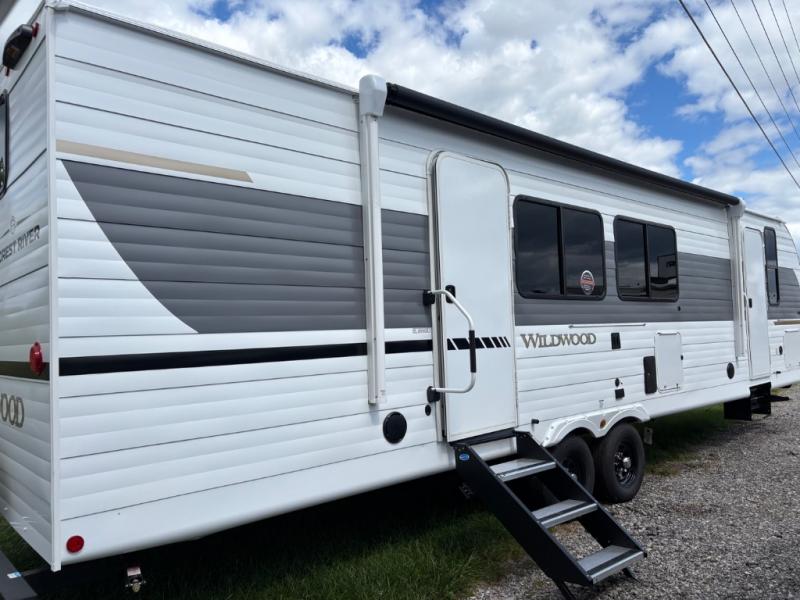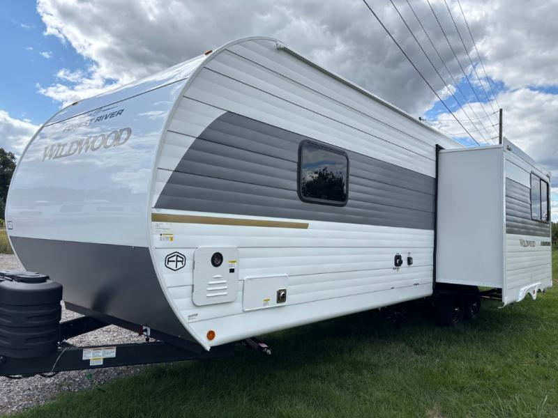 The Wildwood travel trailers are packed with hassle-free camping amenities! There are a variety of floorplans to choose from so you can find the layout that best fits your needs. The heated and enclosed Accessibelly will help protect against the elements and debris during transport, and the exterior retro/metal redesign is sure to be eye-catching! There are stylish roller shades inside, along with updated backsplash, elegant curtain rods and curtains, plus many more interior comforts! Choose a Wildwood travel trailer today for quality and value!