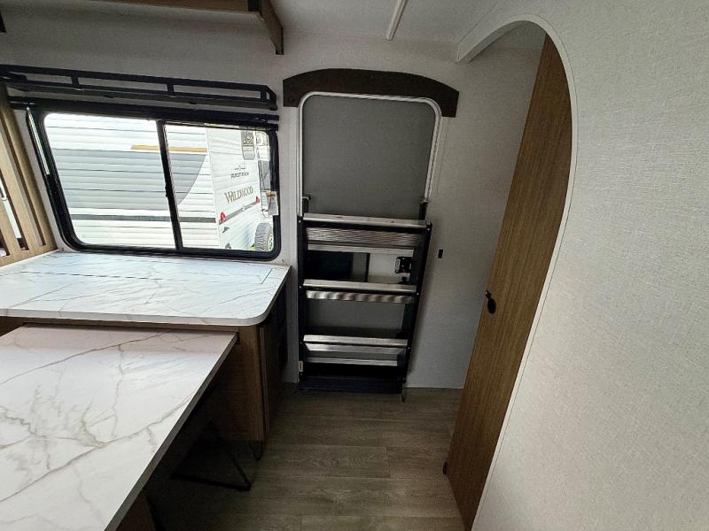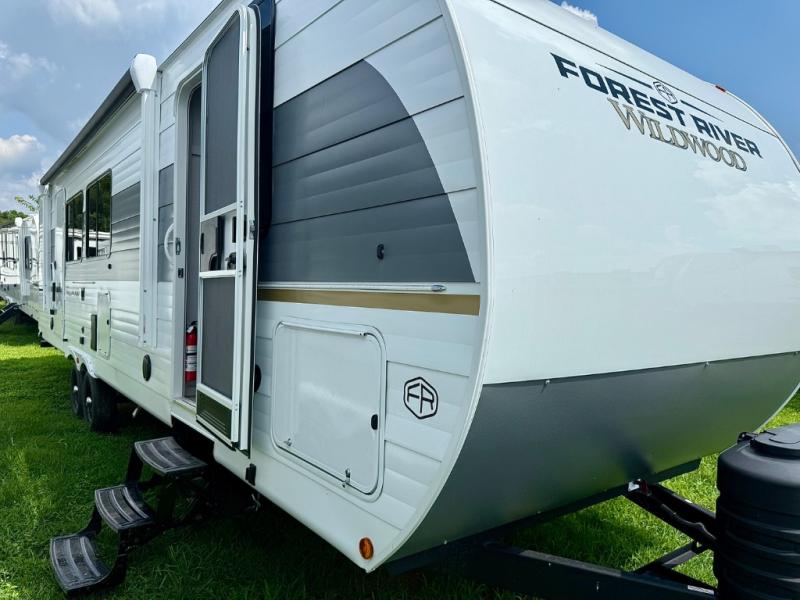 The Wildwood travel trailers are packed with hassle-free camping amenities! There are a variety of floorplans to choose from so you can find the layout that best fits your needs. The heated and enclosed Accessibelly will help protect against the elements and debris during transport, and the exterior retro/metal redesign is sure to be eye-catching! There are stylish roller shades inside, along with updated backsplash, elegant curtain rods and curtains, plus many more interior comforts! Choose a Wildwood travel trailer today for quality and value!