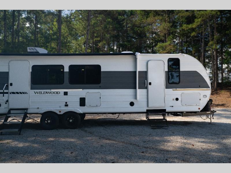The Wildwood travel trailers are packed with hassle-free camping amenities! There are a variety of floorplans to choose from so you can find the layout that best fits your needs. The heated and enclosed Accessibelly will help protect against the elements and debris during transport, and the exterior retro/metal redesign is sure to be eye-catching! There are stylish roller shades inside, along with updated backsplash, elegant curtain rods and curtains, plus many more interior comforts! Choose a Wildwood travel trailer today for quality and value!