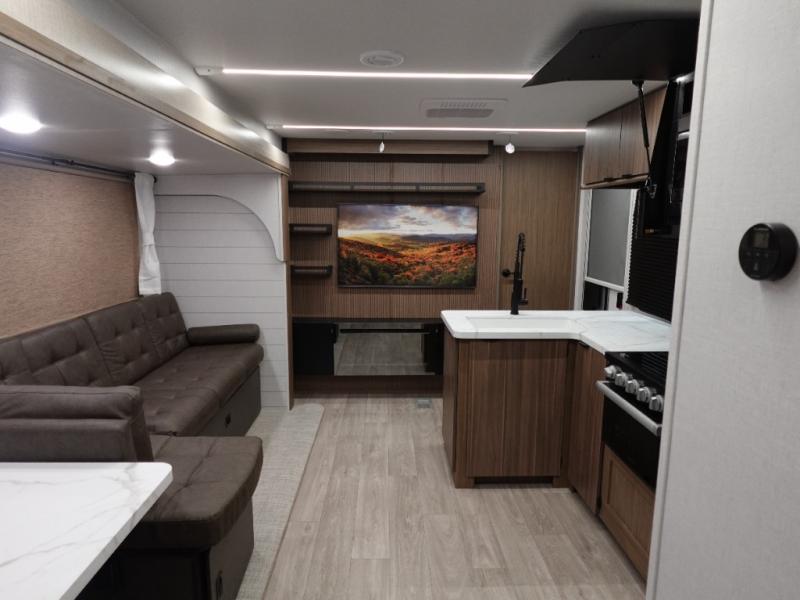 The Wildwood travel trailers are packed with hassle-free camping amenities! The heated and enclosed Accessibelly will help protect against the elements and debris during transport, and the exterior retro/metal redesign is sure to be eye-catching! There are stylish roller shades inside, along with updated backsplash, elegant curtain rods and curtains, plus many more interior comforts! Choose a Wildwood travel trailer today for quality and value!
