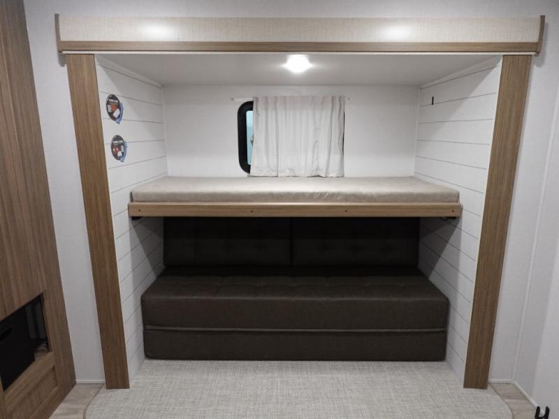 What I liked most: We enjoy the roominess of interior, bunkroom large open area has lots of options available for usage and like having solid privacy doors for both bed areas, but favorite part is the large out side kitchen.