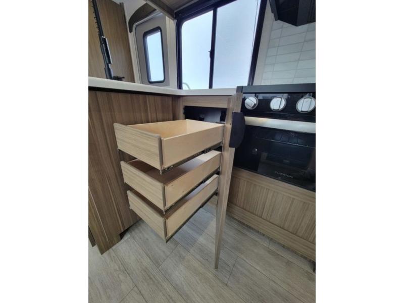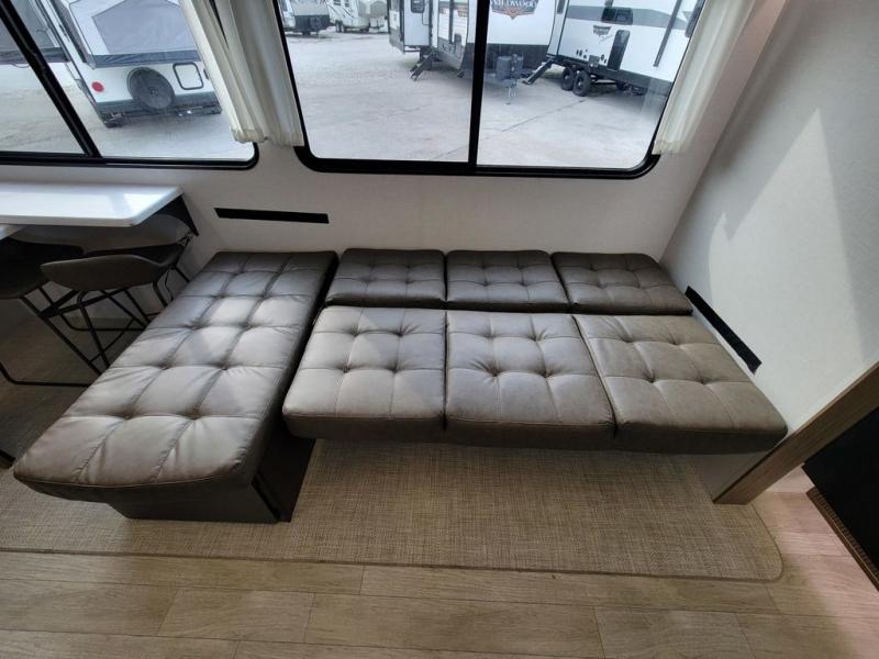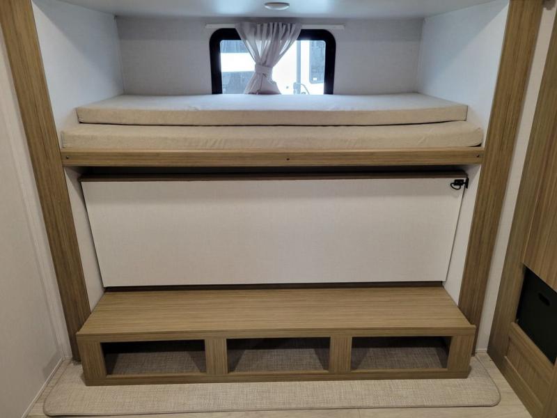 What I liked most: We enjoy the roominess of interior, bunkroom large open area has lots of options available for usage and like having solid privacy doors for both bed areas, but favorite part is the large out side kitchen.