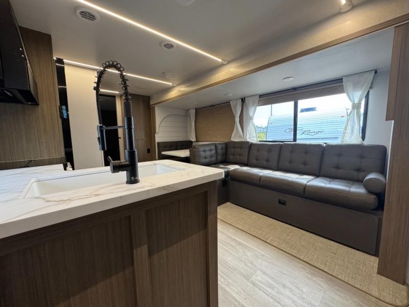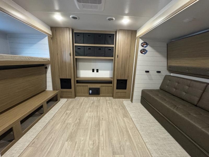 What I liked most: We enjoy the roominess of interior, bunkroom large open area has lots of options available for usage and like having solid privacy doors for both bed areas, but favorite part is the large out side kitchen.