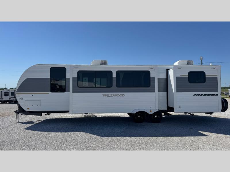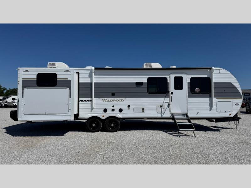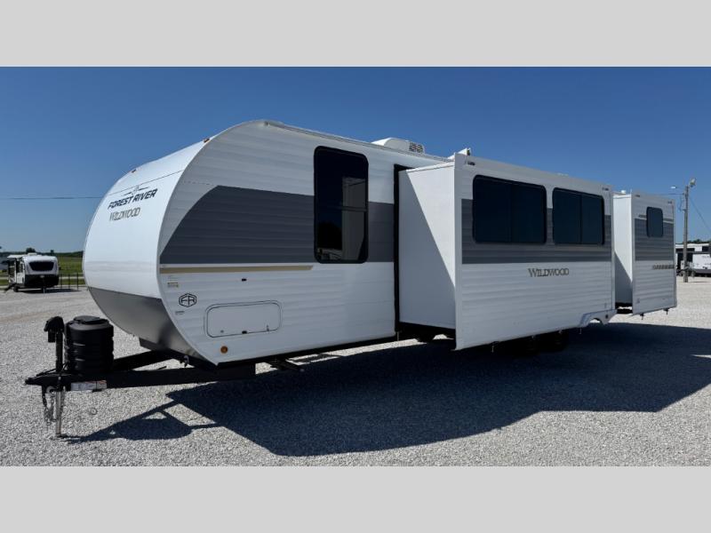 The Wildwood travel trailers are packed with hassle-free camping amenities! There are a variety of floorplans to choose from so you can find the layout that best fits your needs. The heated and enclosed Accessibelly will help protect against the elements and debris during transport, and the exterior retro/metal redesign is sure to be eye-catching! There are stylish roller shades inside, along with updated backsplash, elegant curtain rods and curtains, plus many more interior comforts! Choose a Wildwood travel trailer today for quality and value!