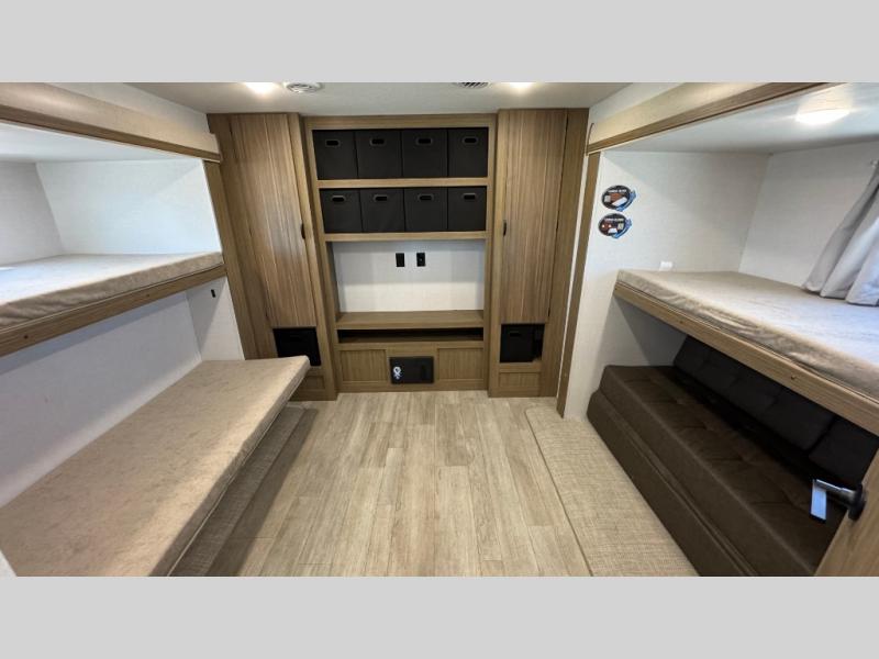 What I liked most: We enjoy the roominess of interior, bunkroom large open area has lots of options available for usage and like having solid privacy doors for both bed areas, but favorite part is the large out side kitchen.