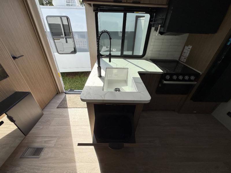 What I liked most: We enjoy the roominess of interior, bunkroom large open area has lots of options available for usage and like having solid privacy doors for both bed areas, but favorite part is the large out side kitchen.