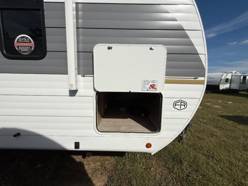 The Wildwood travel trailers are packed with hassle-free camping amenities! There are a variety of floorplans to choose from so you can find the layout that best fits your needs. The heated and enclosed Accessibelly will help protect against the elements and debris during transport, and the exterior retro/metal redesign is sure to be eye-catching! There are stylish roller shades inside, along with updated backsplash, elegant curtain rods and curtains, plus many more interior comforts! Choose a Wildwood travel trailer today for quality and value!