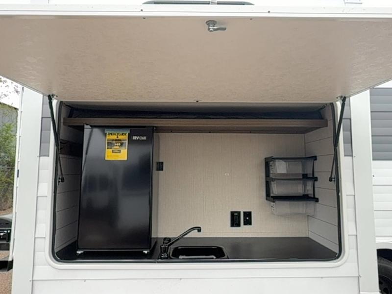 With this triple-slide Wildwood travel trailer, everyone can have their own space! The private bunkhouse features dual opposing slides that provide tons of space for the kids to play. The large slide in the living area opens up the whole space, and here you'll find a Versa Lounge with booth dinette which is perfect for mealtimes and relaxing. You'll love the front private bedroom with a custom king bed with Versa-Tilt, and everyone will appreciate the full bath with walk-in shower. The chef of the family can cook a meal on the cooktop, and you'll love the outdoor kitchen with an oversized mini refrigerator and sink!
