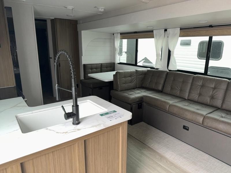 What I liked most: We enjoy the roominess of interior, bunkroom large open area has lots of options available for usage and like having solid privacy doors for both bed areas, but favorite part is the large out side kitchen.