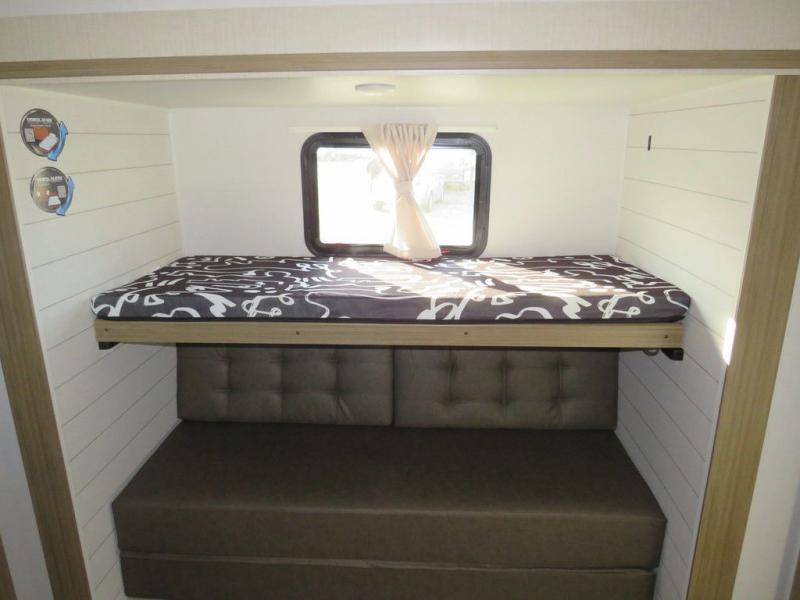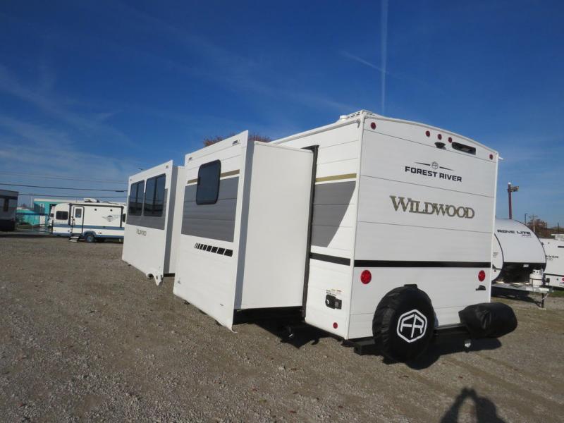 The Wildwood travel trailers are packed with hassle-free camping amenities! There are a variety of floorplans to choose from so you can find the layout that best fits your needs. The heated and enclosed Accessibelly will help protect against the elements and debris during transport, and the exterior retro/metal redesign is sure to be eye-catching! There are stylish roller shades inside, along with updated backsplash, elegant curtain rods and curtains, plus many more interior comforts! Choose a Wildwood travel trailer today for quality and value!